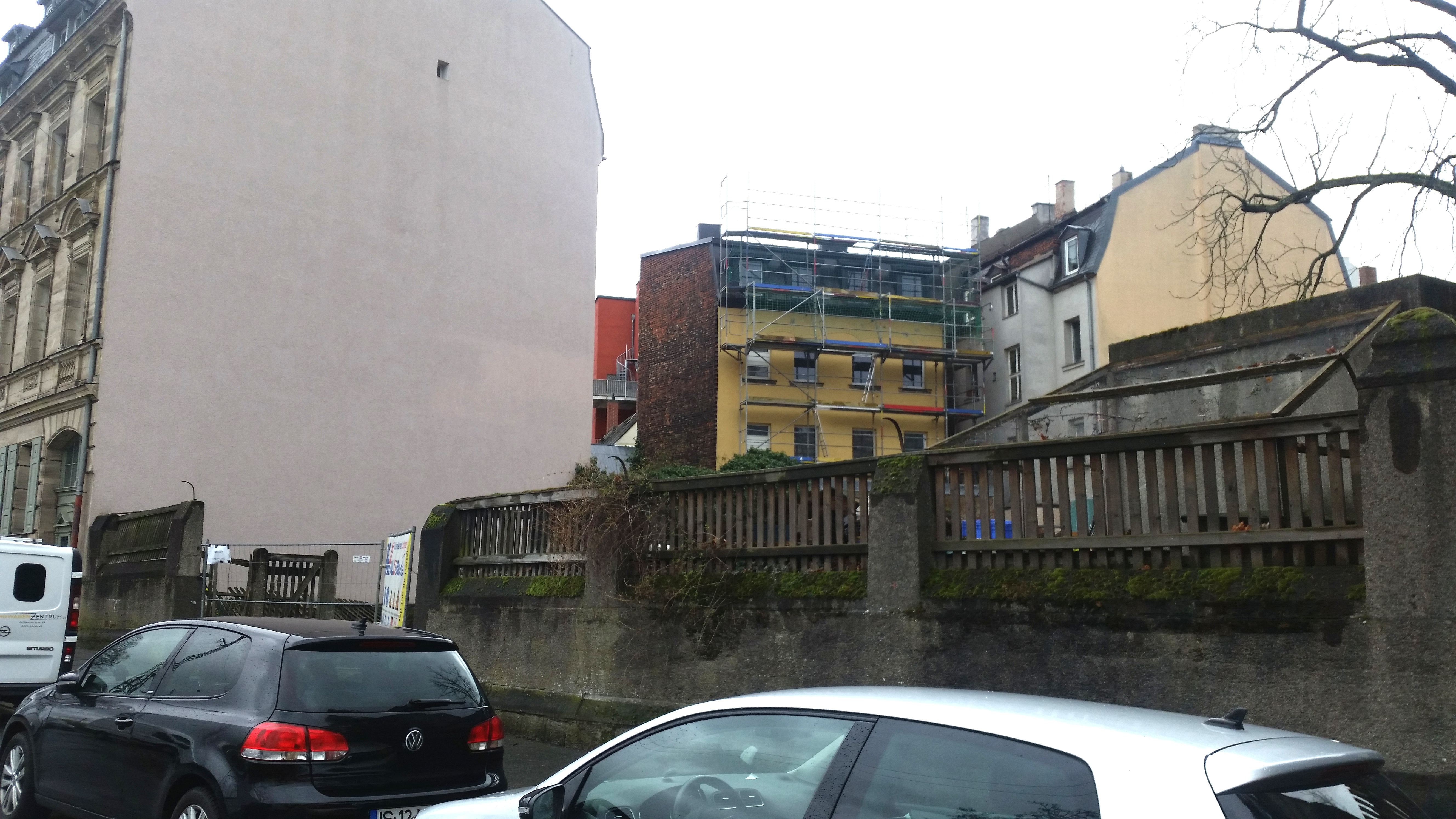 | Beschreibung | Hinterer Teil der Einfriedung von Grundstück Leyher Str. 1. Zustand vor Neubebauung, März 2023 | ||