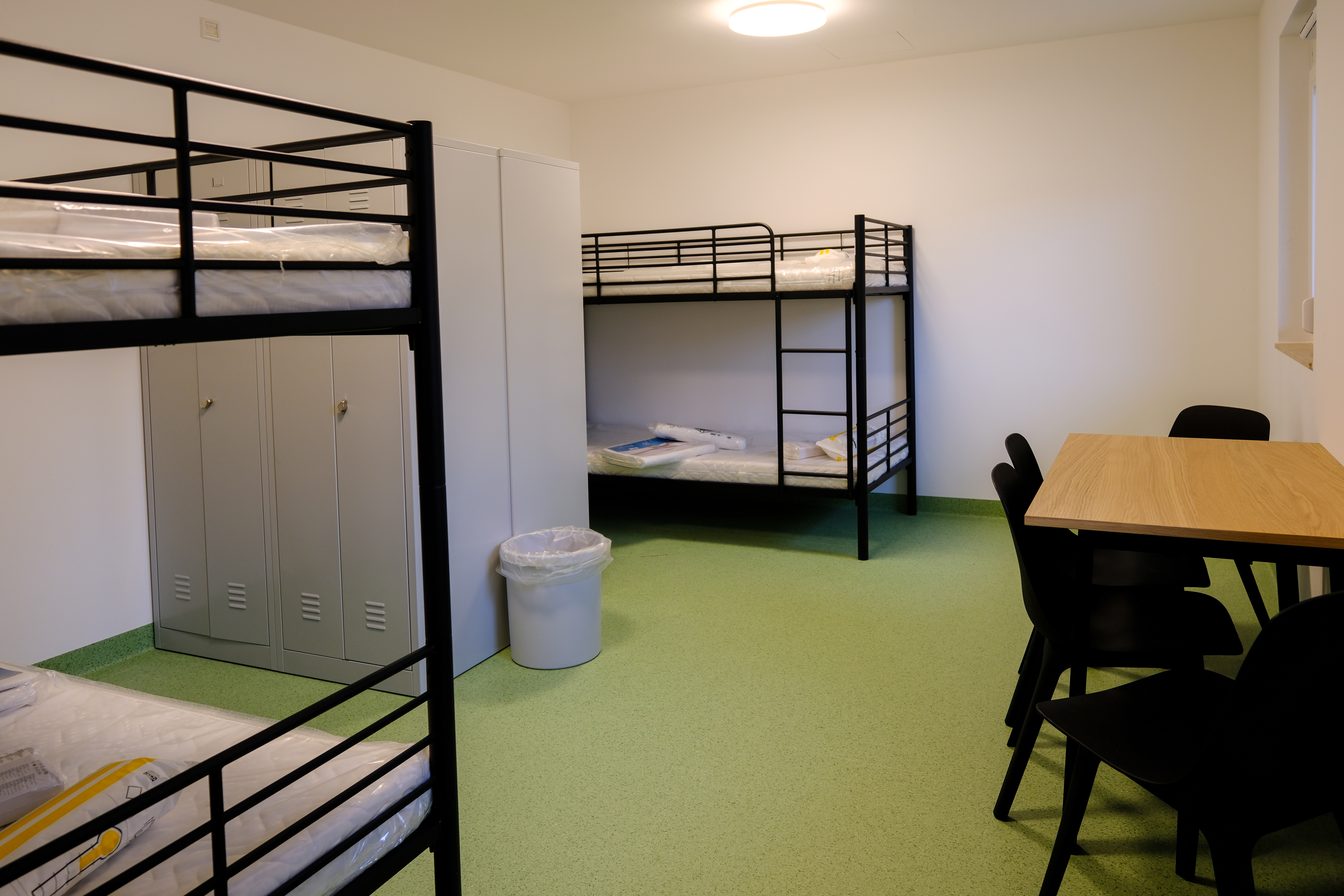 BeschreibungDas neue Obdachlosenheim in der Leyher Straße - Zimmer in der Notschlafstelle, Okt. 2025