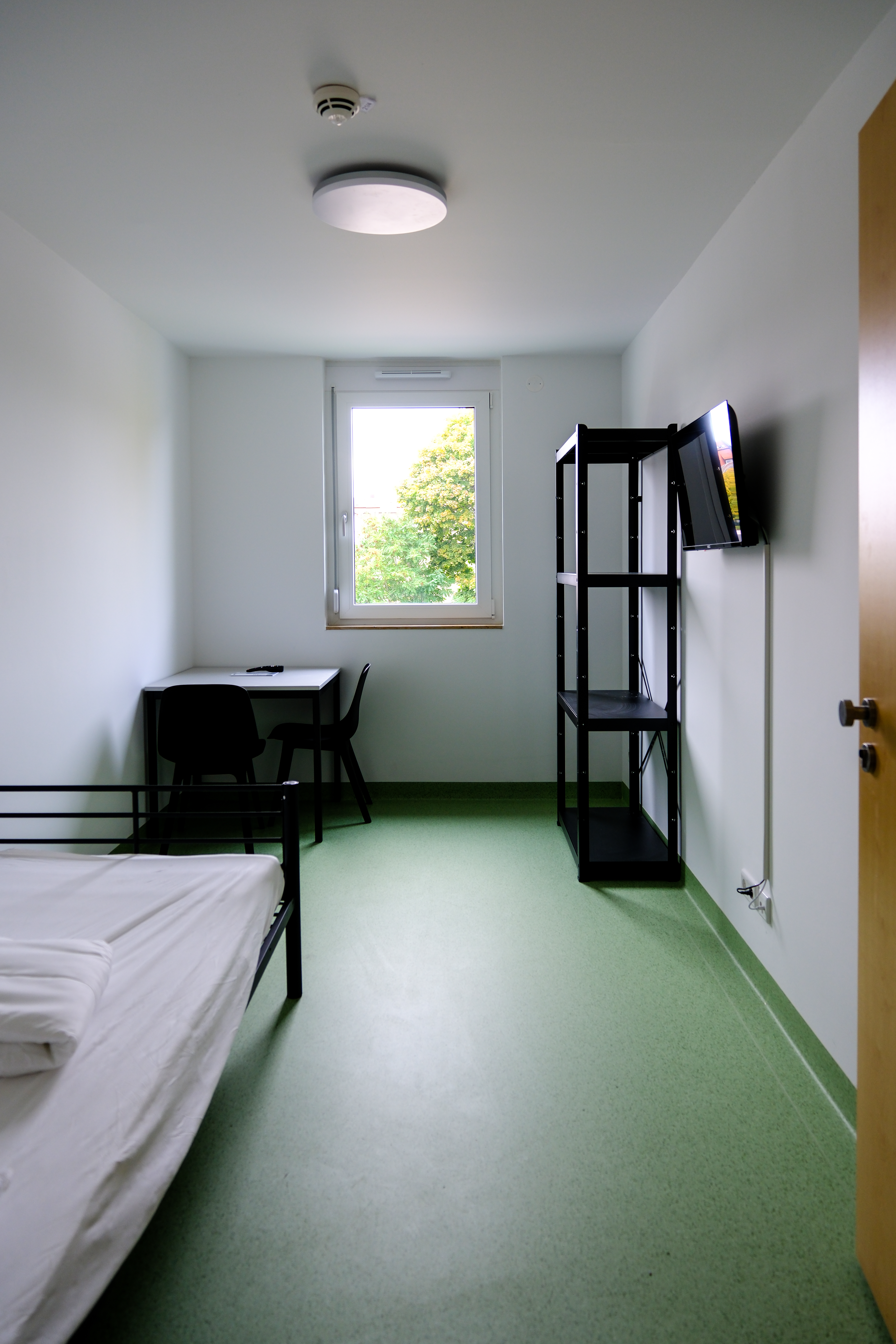 BeschreibungDas neue Obdachlosenheim in der Leyher Straße - Zimmer im Obdachlosenheim, Okt. 2025