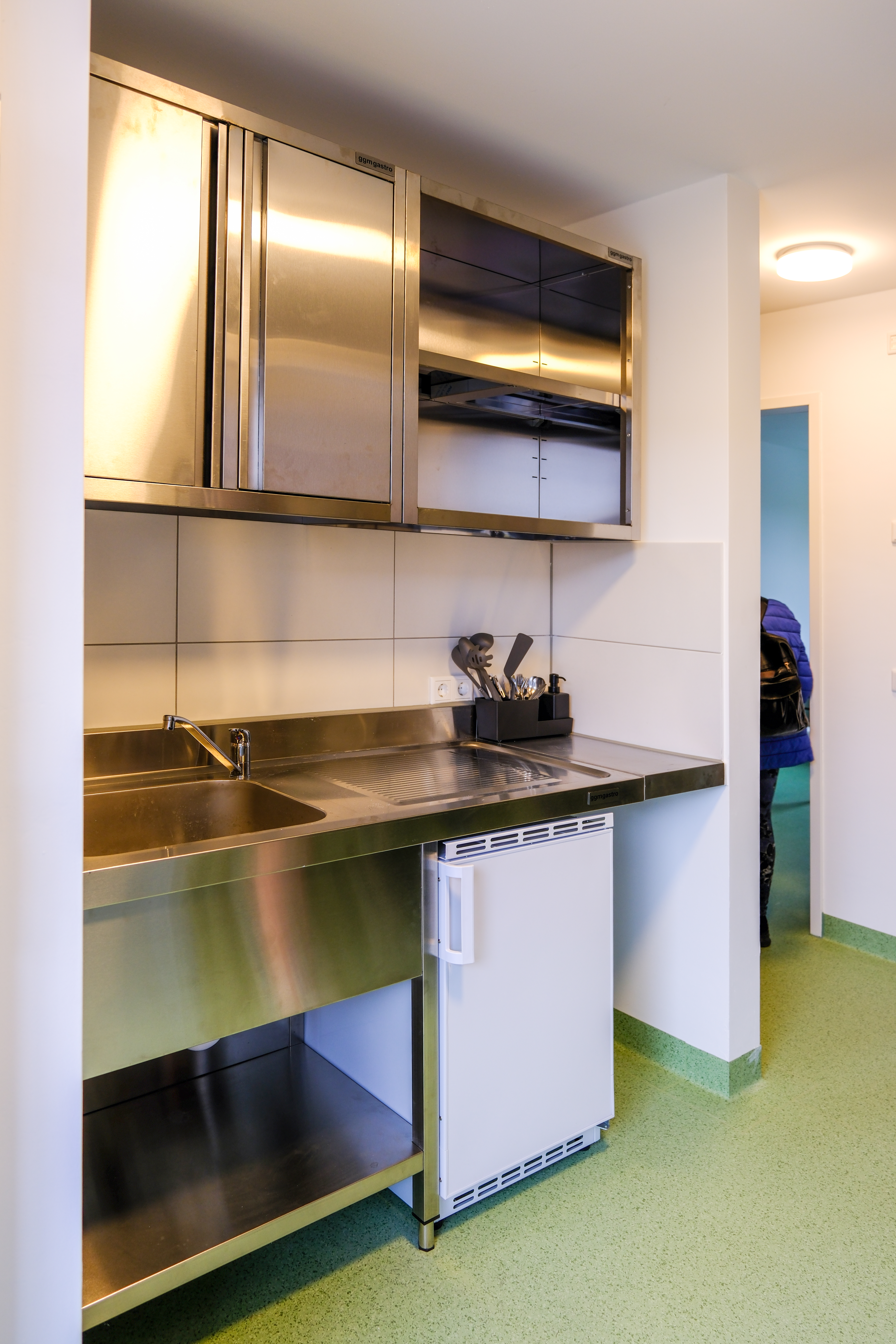 Das neue Obdachlosenheim in der Leyher Straße - Küche für zwei Zimmer im Obdachlosenheim, Okt. 2025 Urheber: Kamran Salimi<br><br>Lizenz: CC BY-SA 4.0
