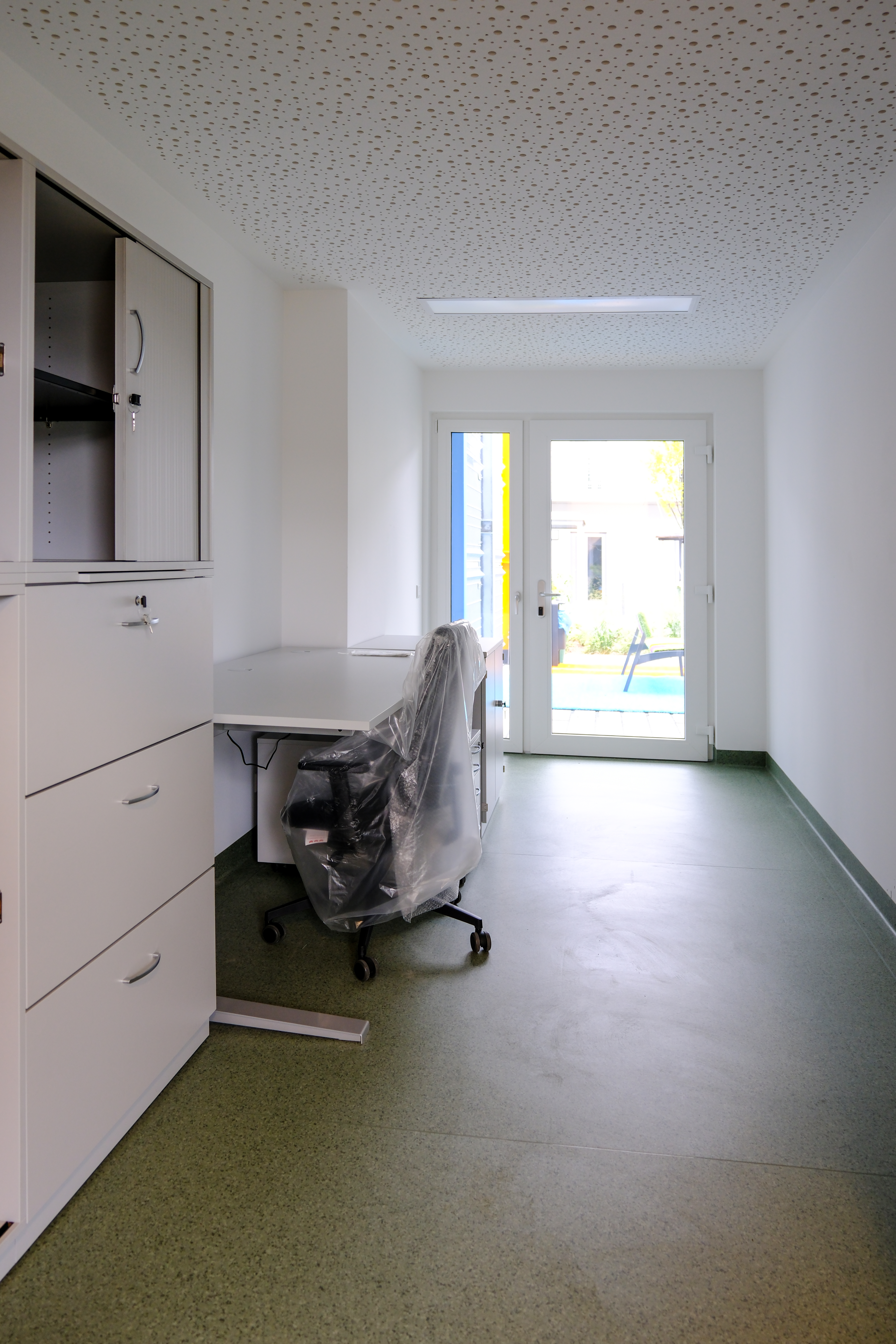 | Beschreibung | Das neue Obdachlosenheim in der Leyher Straße - Büro vor der Einrichtung, Okt. 2025 | ||