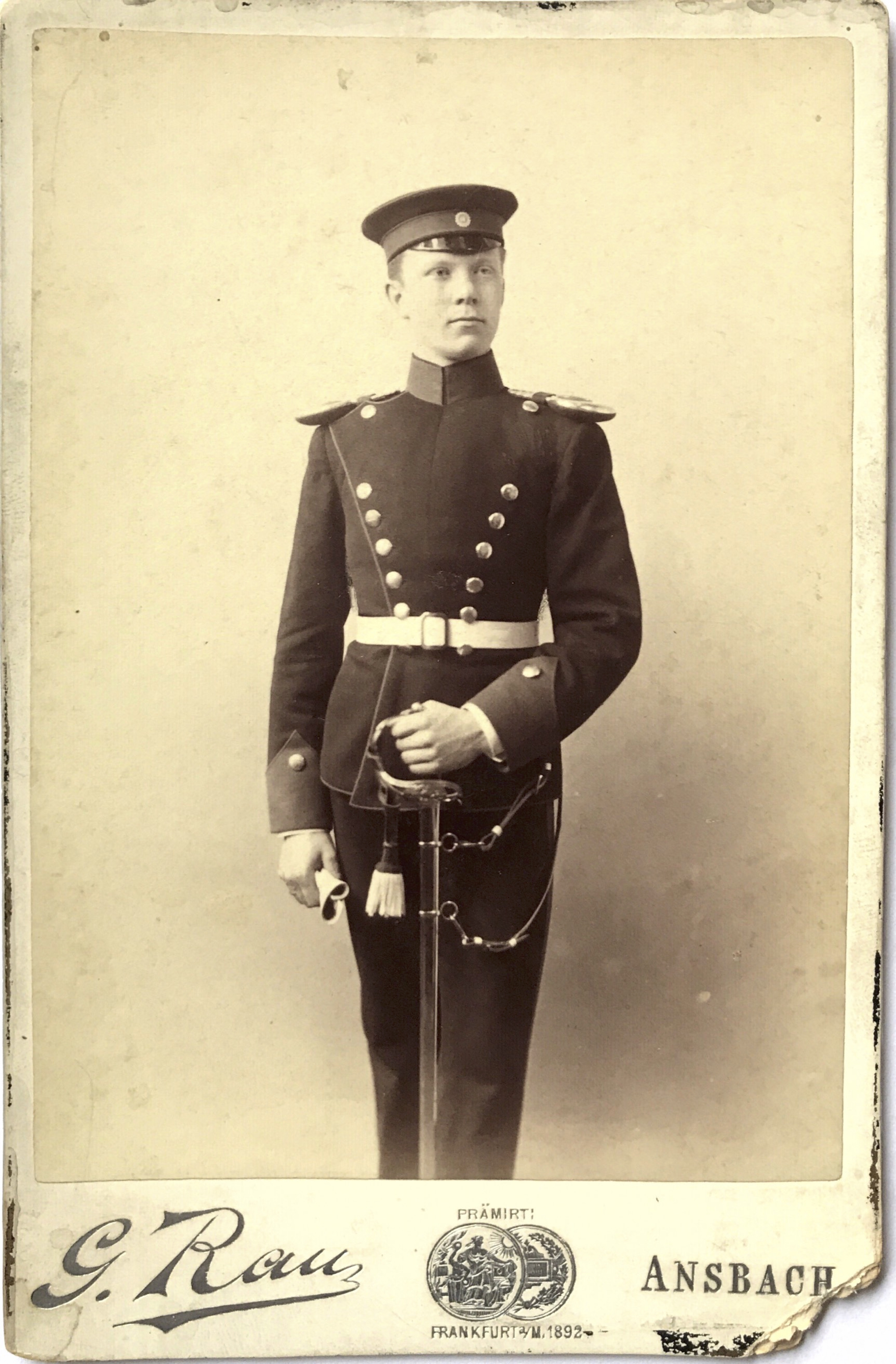 Ludwig Gran als Angehöriger des k. b. 2. Ulanen-Regiments „König“ in Ansbach, um 1893; Foto: Atelier Rau, Ansbach, "Carolinenstrasse"