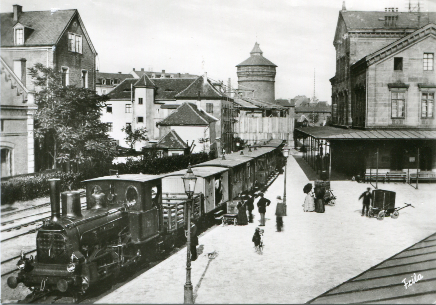 | Beschreibung | zeitgenössische Ansichtskarte mit abfahrbereiter Ludwigseisenbahn nach Fürth am Nürnberger Ludwigsbahnhof am Plärrer ca. 1910 | ||