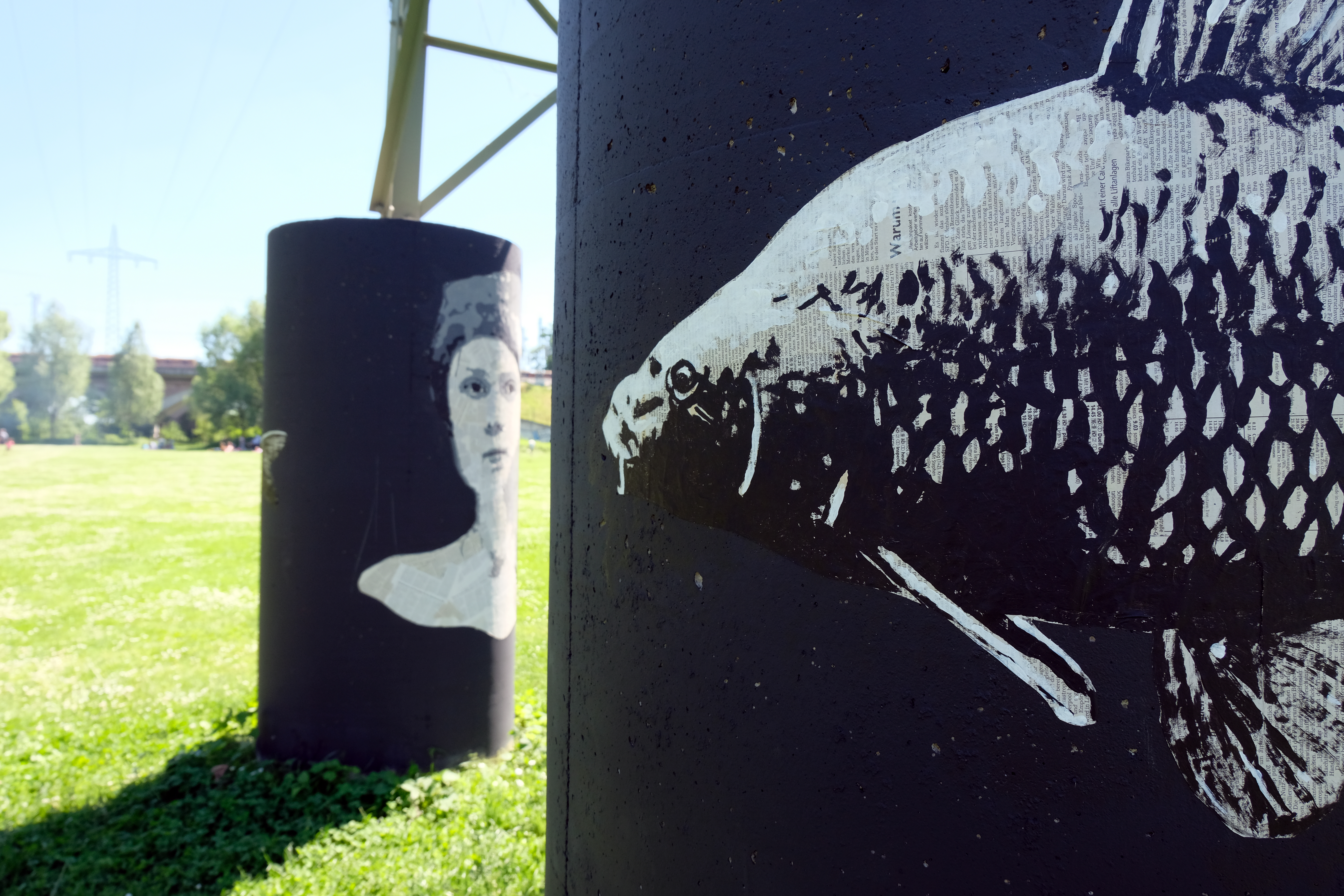 | Dateiinfo (Bild-Unterschrift und Info-Box, automatisch erstellt) | Kunstinstallation im Wiesengrund von Lutz Krutein während der FREI LUFT GALERIE, Juni 2021 Urheber: Kamran Salimi<br><br>Lizenz: cc-by-sa-3.0 | ||