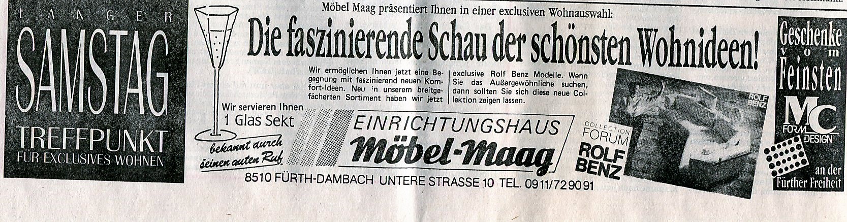 | Beschreibung | Werbung Firma Möbel-Maag den Fürther Nachrichten vom März 1992 | ||