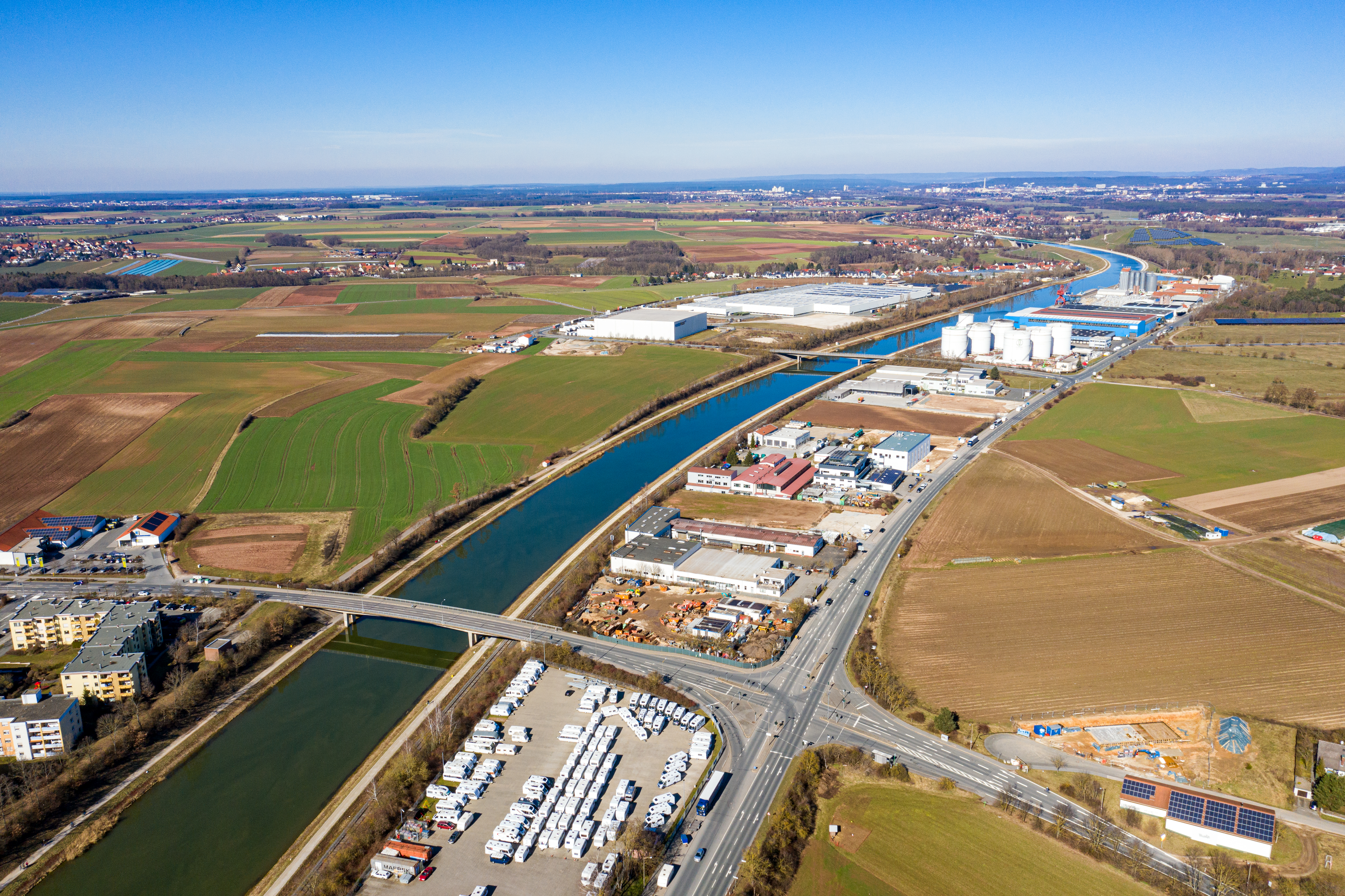| Beschreibung | Blick vom Gewerbegebiet Mainstraße/Aischweg nach Süden in Richtung Atzenhof am Main-Donau-Kanal, März 2021 | ||