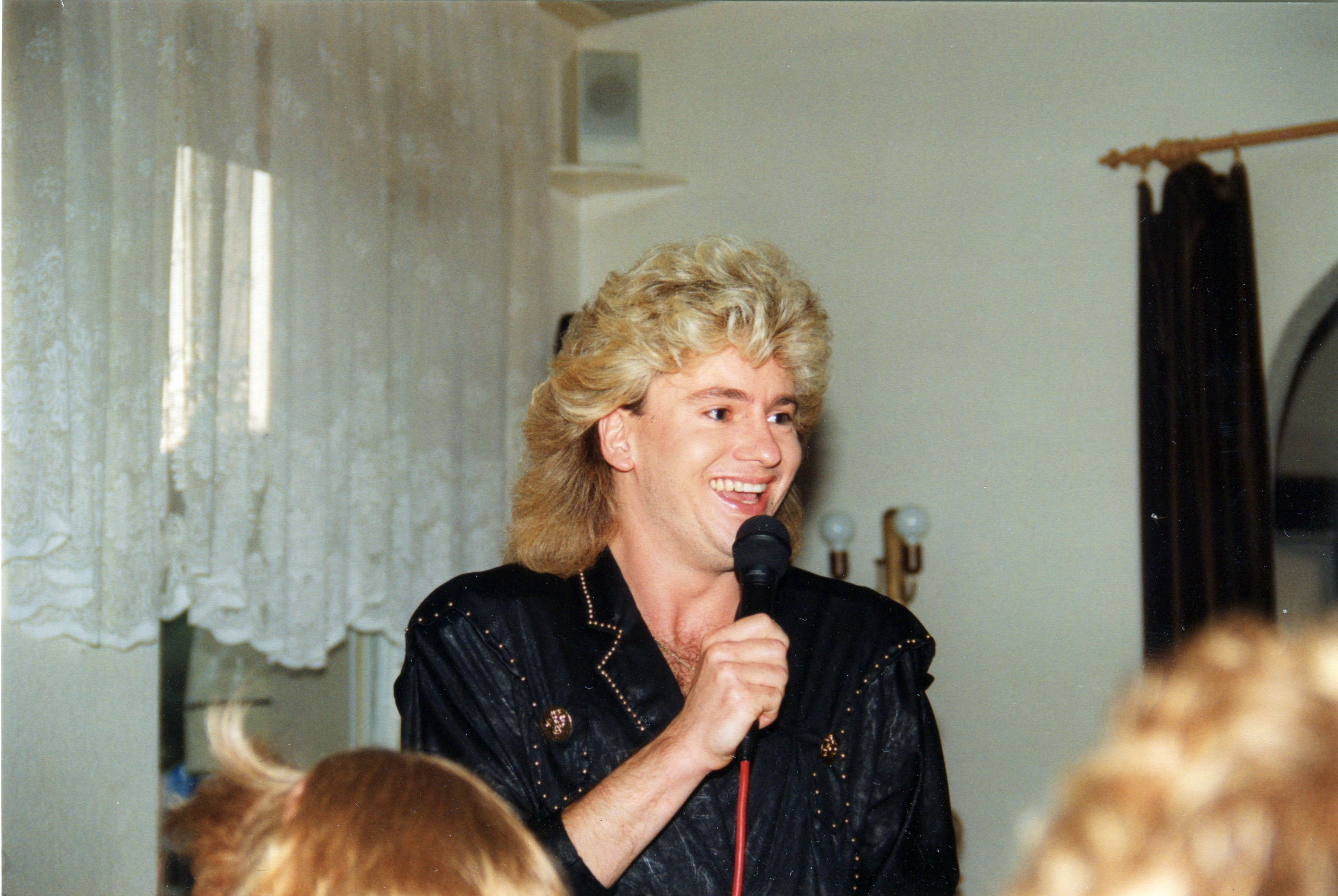 | Beschreibung | Schlagersänger Mark Lorenz im ehem. Café Waldmann, 1990 | ||