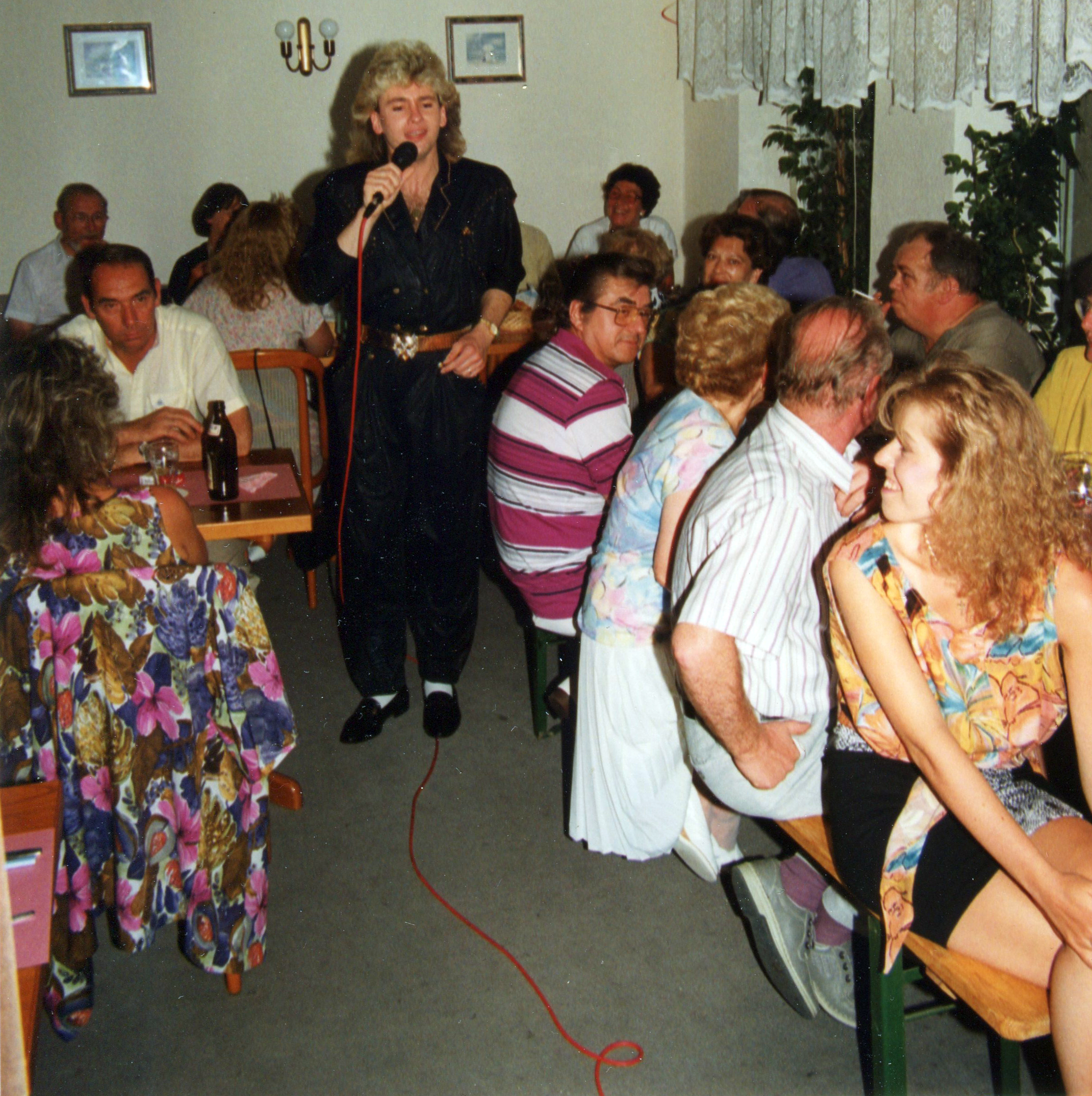 | Beschreibung | Schlagersänger Mark Lorenz im ehem. Café Waldmann, 1990 | ||
