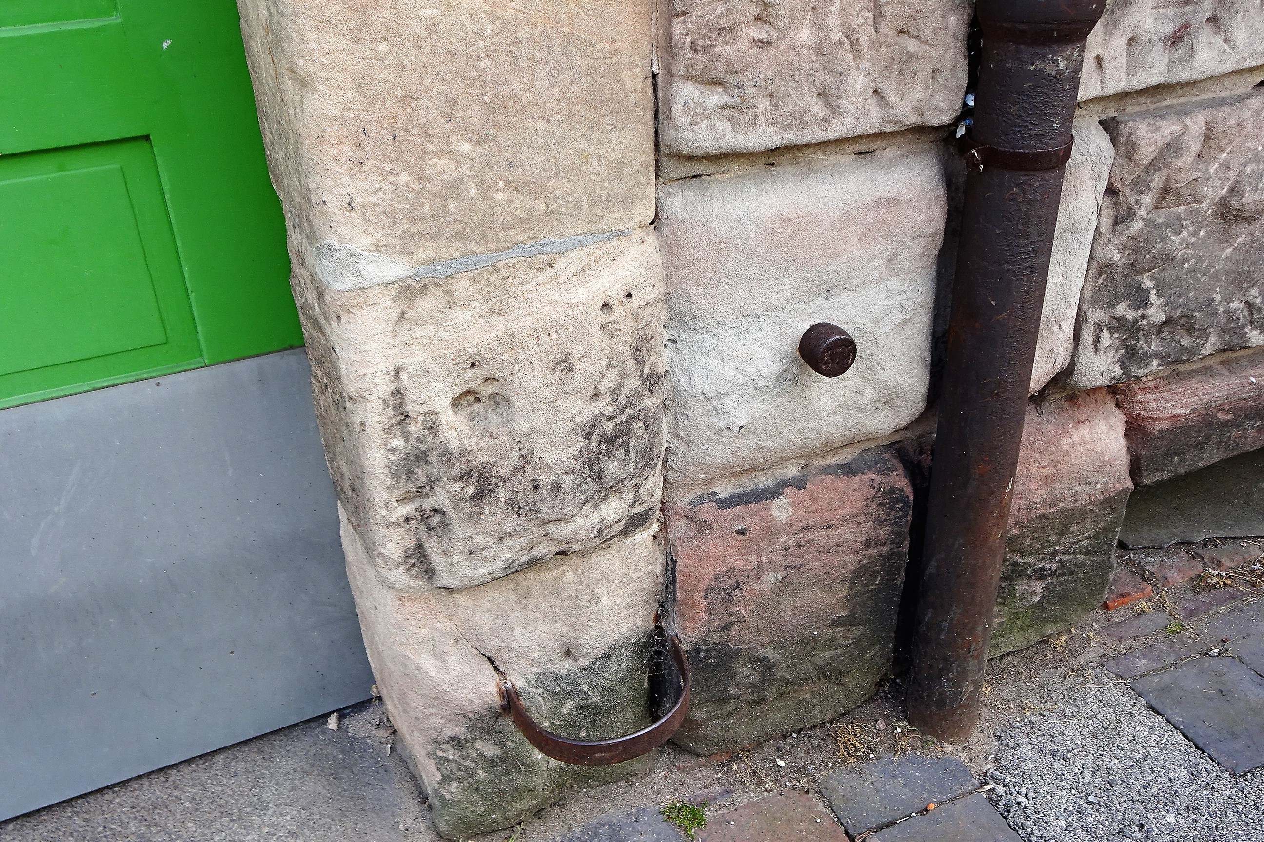 Hauseingang Mauerstraße 4 mit alten Haxnabkratzer und amtlicher Höhenmaß Wand Markierung im Juni ... Hauseingang Mauerstraße 4 mit alten Haxnabkratzer und amtlicher Höhenmaß Wand Markierung im Juni 2020<br>Urheber: Norbert Pietsch<br>Erstellungsdatum: 13. Juni 2020<br>Lizenz: cc-by-sa-3.0