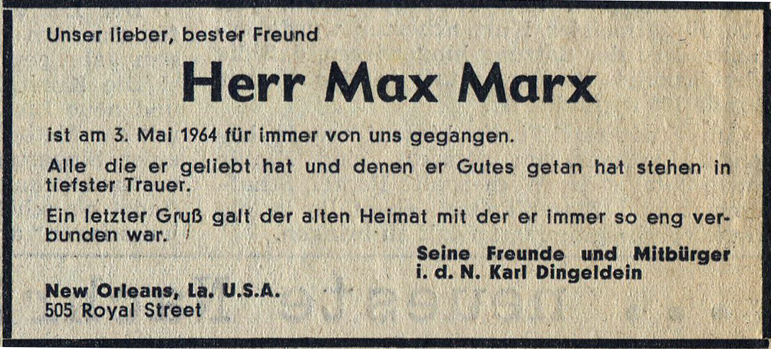 | Datei:Max Marx 1964 Todesanzeige.jpg | |||