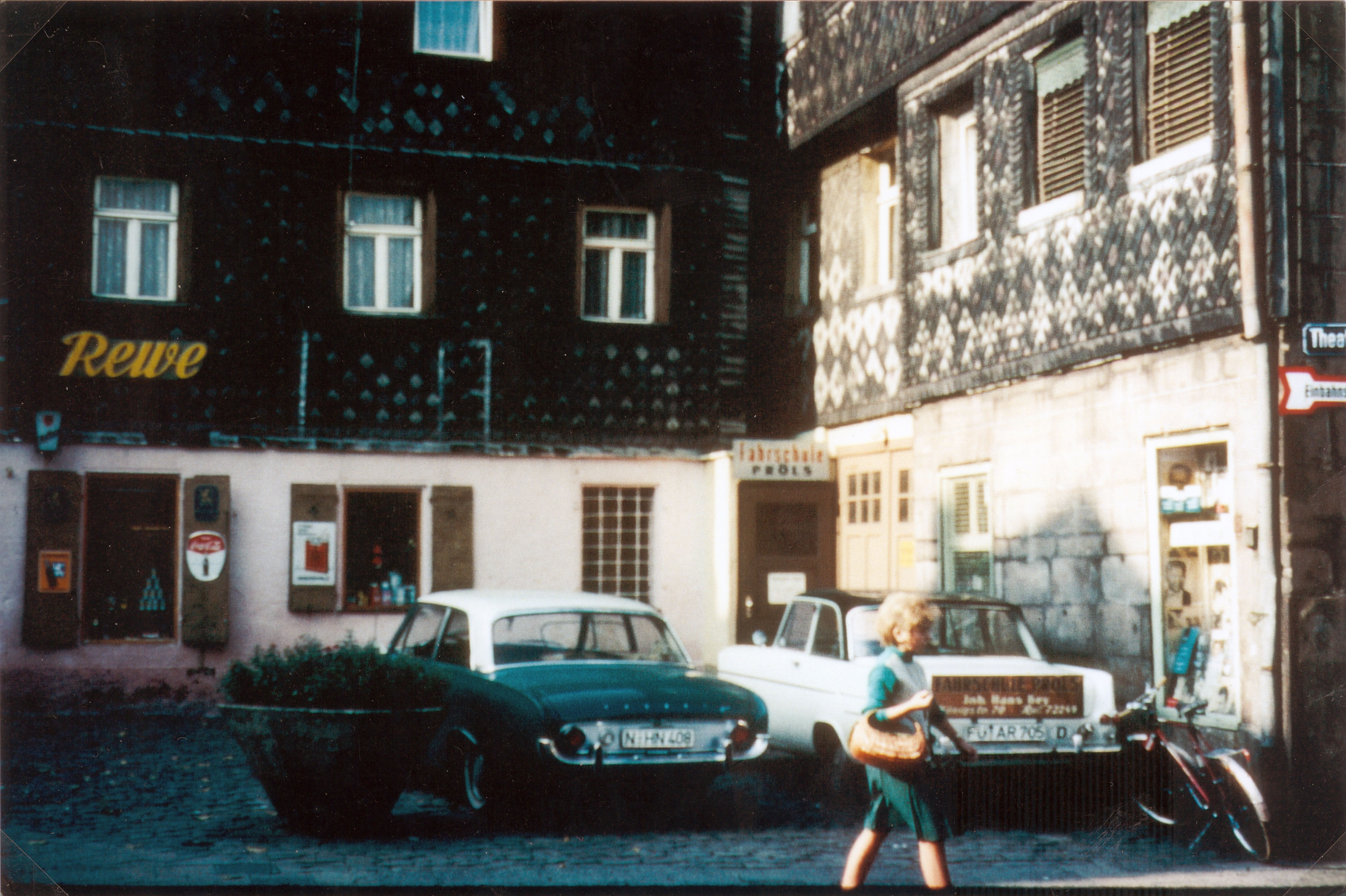 | Beschreibung | Mohrenstraße 8 (Lebensmittel Hanusek, Fahrschule Pröls), 6 (Friseur Meyer) | ||