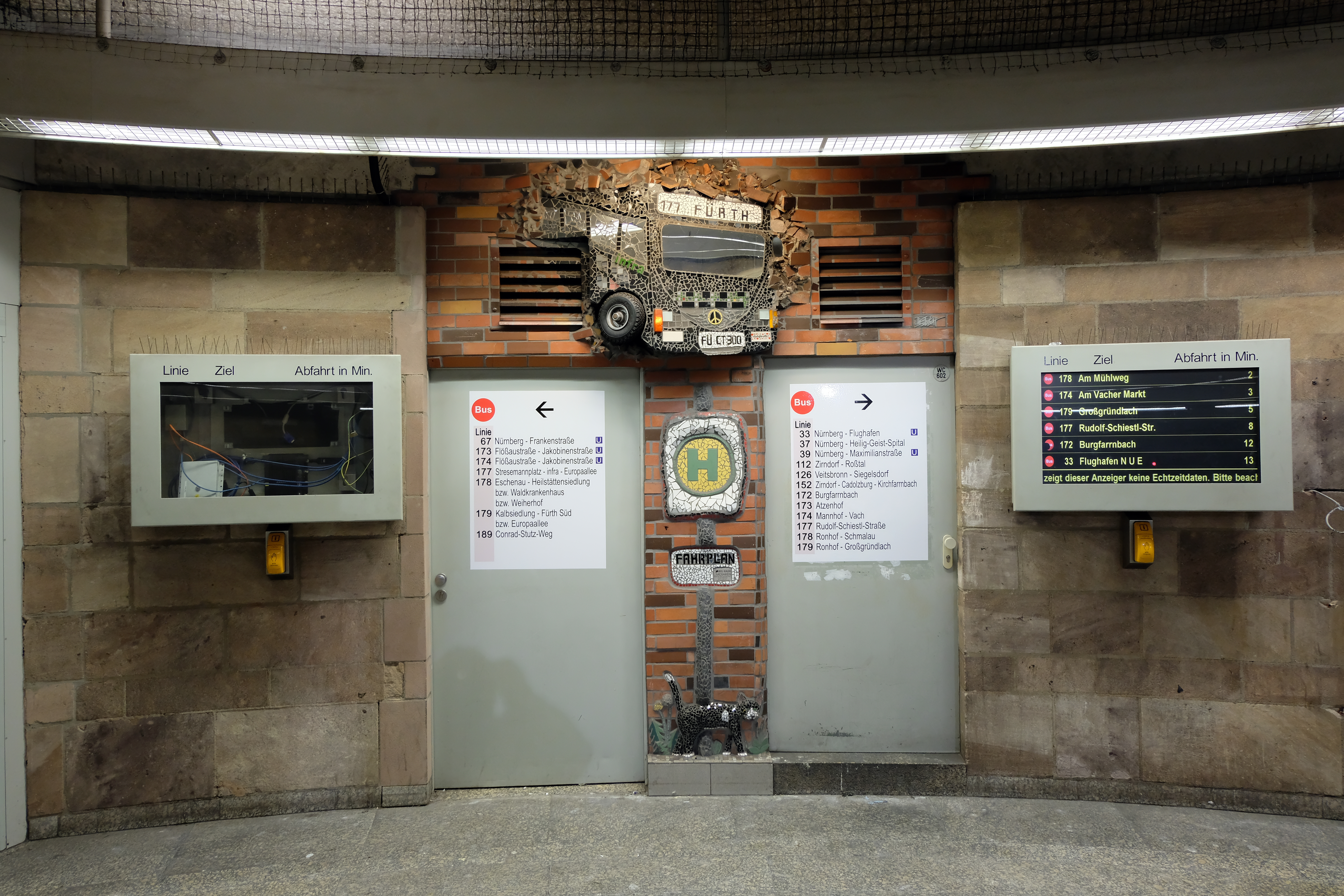 Mosaik der Fürther Künstlerin Iris Rauh im U-Bahnverteiler unterhalb des Hauptbahnhofs, Mrz. 2020 Urheber: Kamran Salimi<br>Erstellungsdatum: 18. März 2020<br>Lizenz: cc-by-sa-3.0