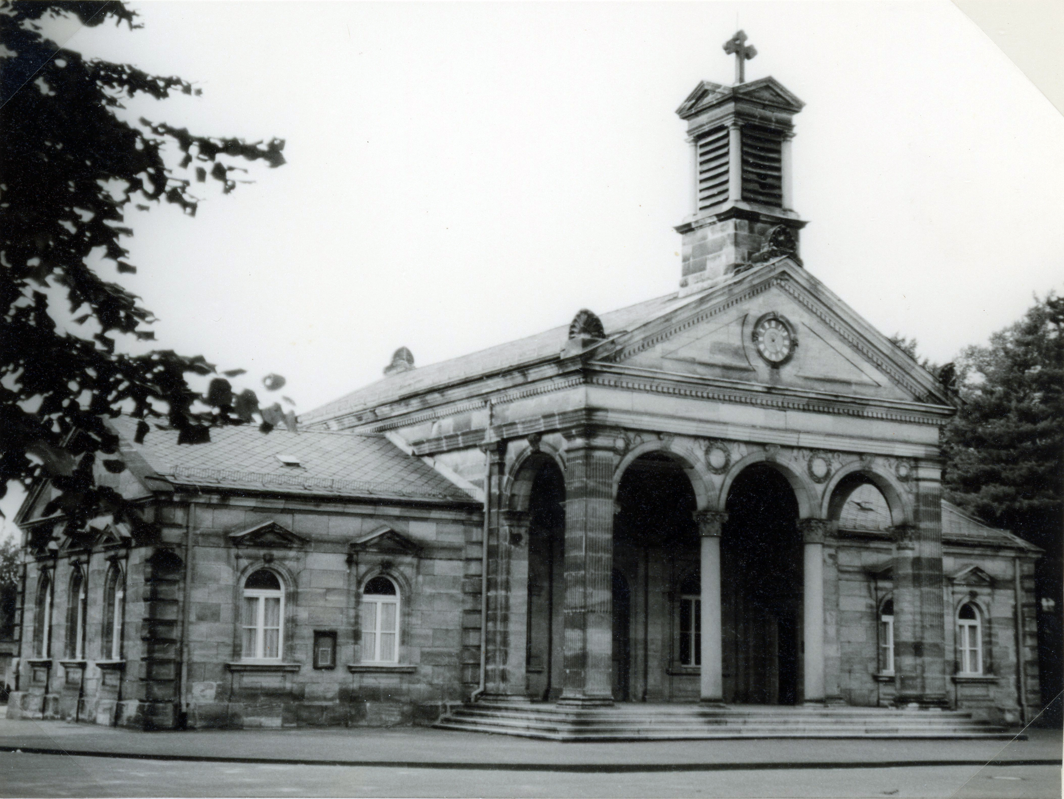 | Beschreibung | Die Aussegnungshalle auf dem Fürther Hauptfriedhof, Juli 1967 | ||