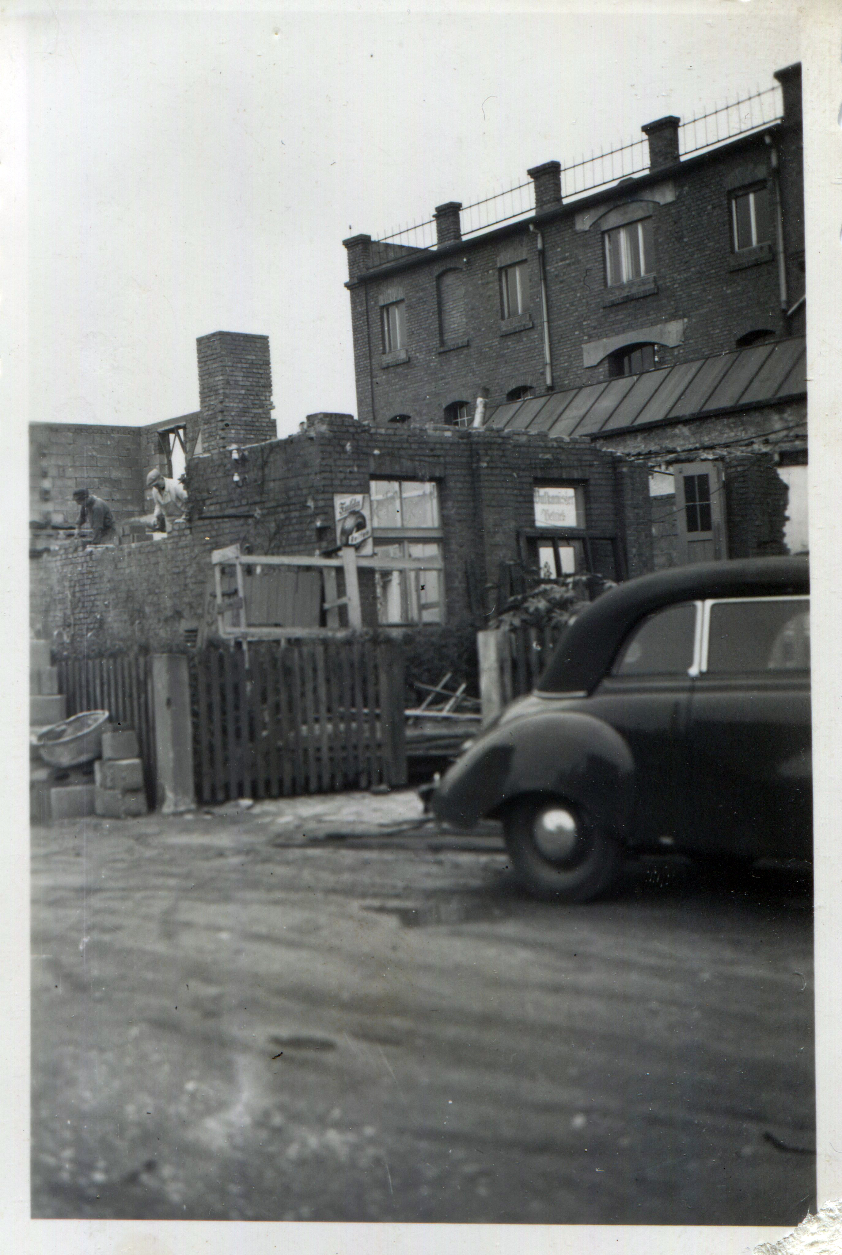 | Beschreibung | Abrissarbeiten am Reifen-Reichel in der Langen Straße - im Hintergrund die Fabrik J. W. Höfler, 1953 | ||