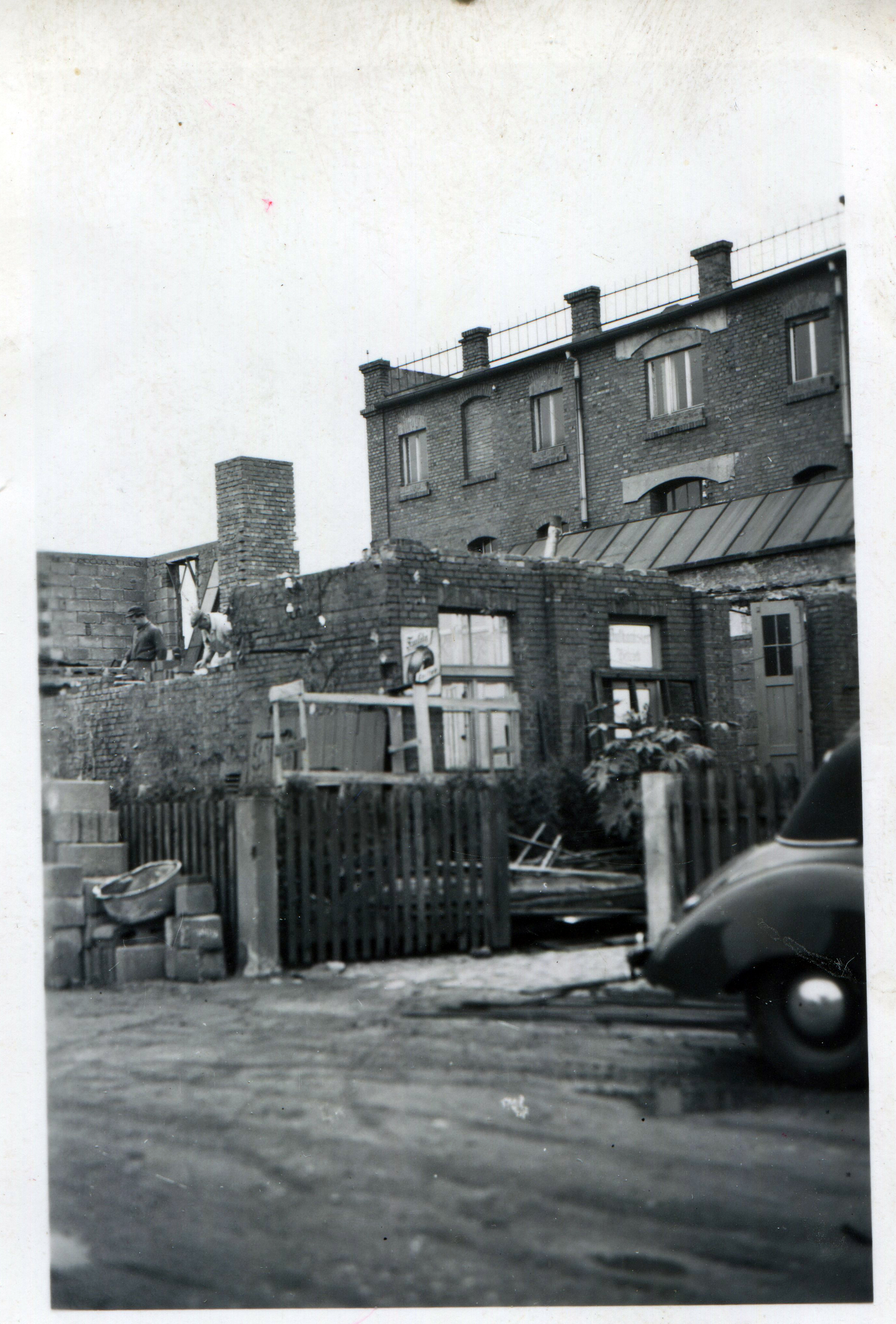 | Beschreibung | Abrissarbeiten am Reifen-Reichel in der Langen Straße - im Hintergrund die Fabrik J. W. Höfler, 1953 | ||