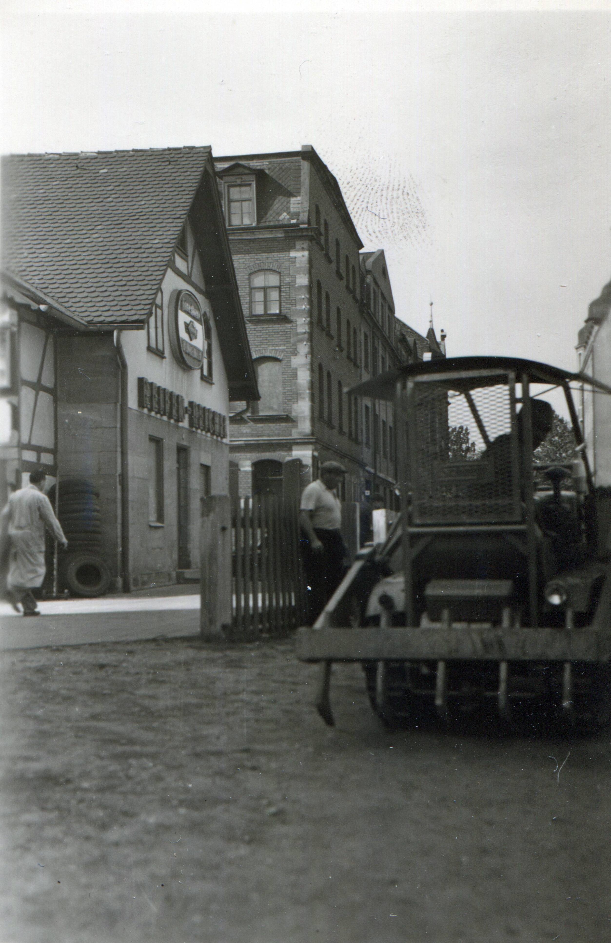 | Beschreibung | Die Firma Reifen-Reichel in der Langen Straße, im Hintergrund das Gebäude Finkenstraße 6 d, 1955 | ||