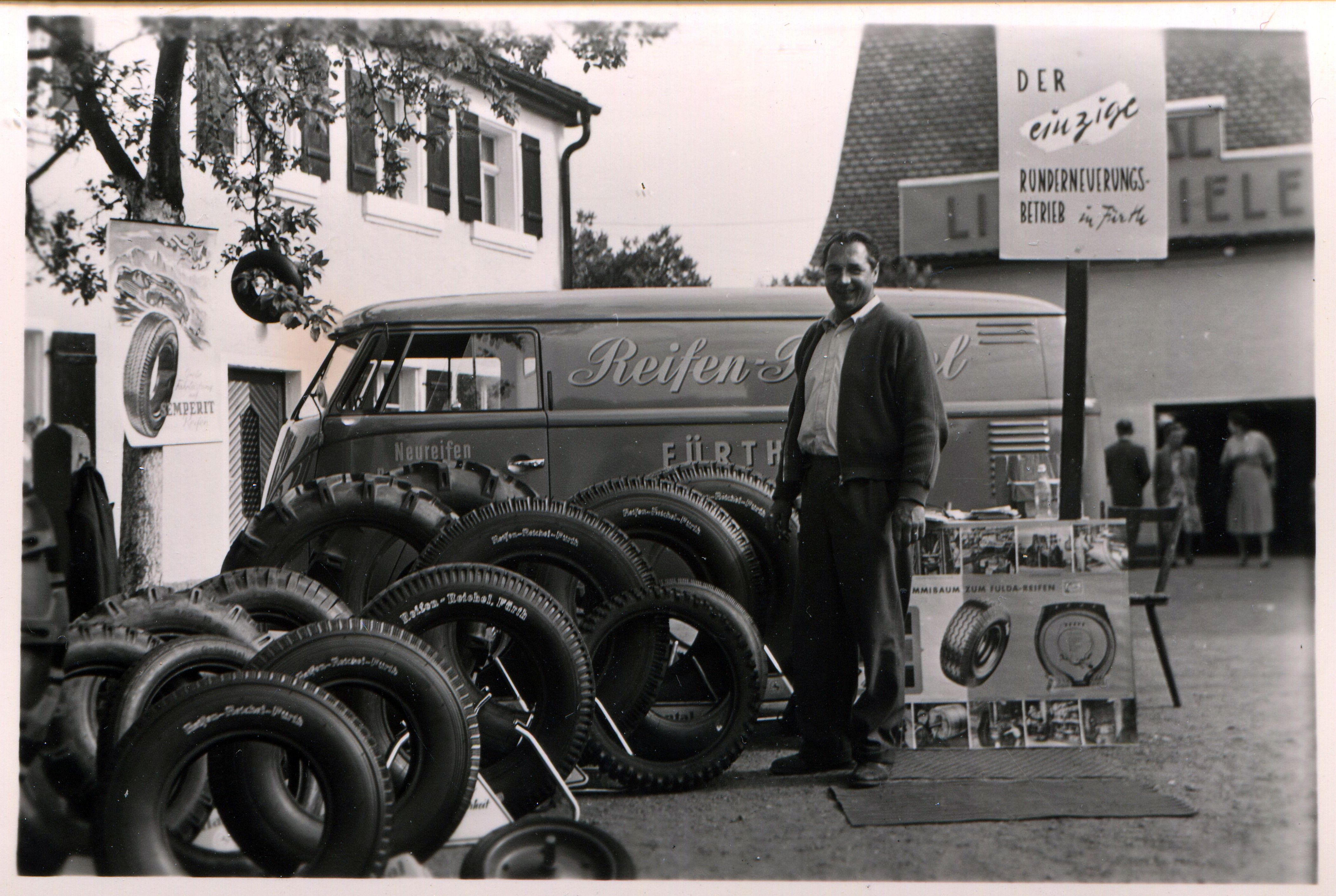 | Beschreibung | Werbeaktion der Firma Reifen-Reichel, 1955, vermutlich in Großgründlach | ||