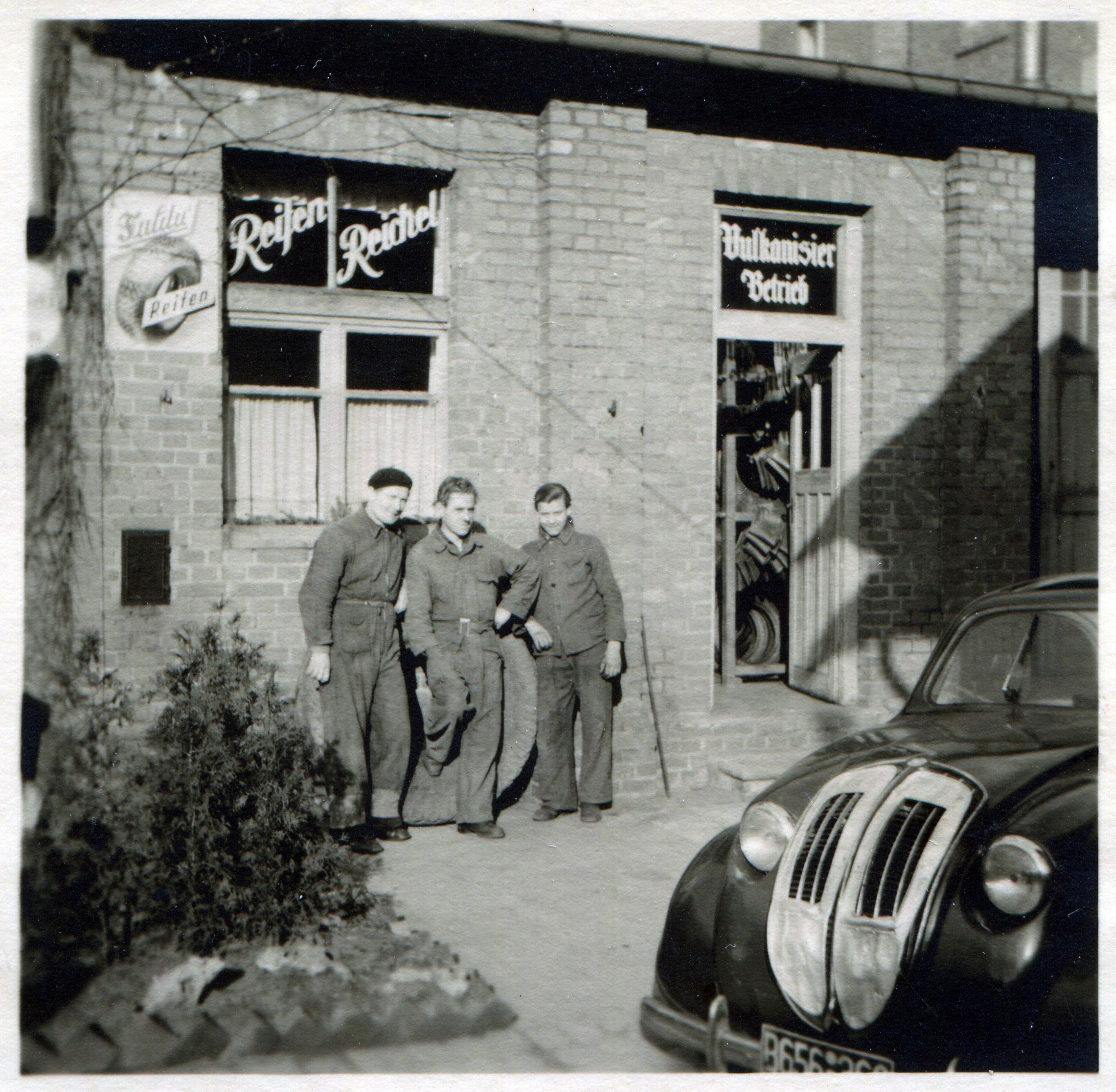 | Beschreibung | Vulkanisierungsbetrieb und Reifenhandel Reifen-Reichel in der Langen Straße 67, ca. 1950 | ||