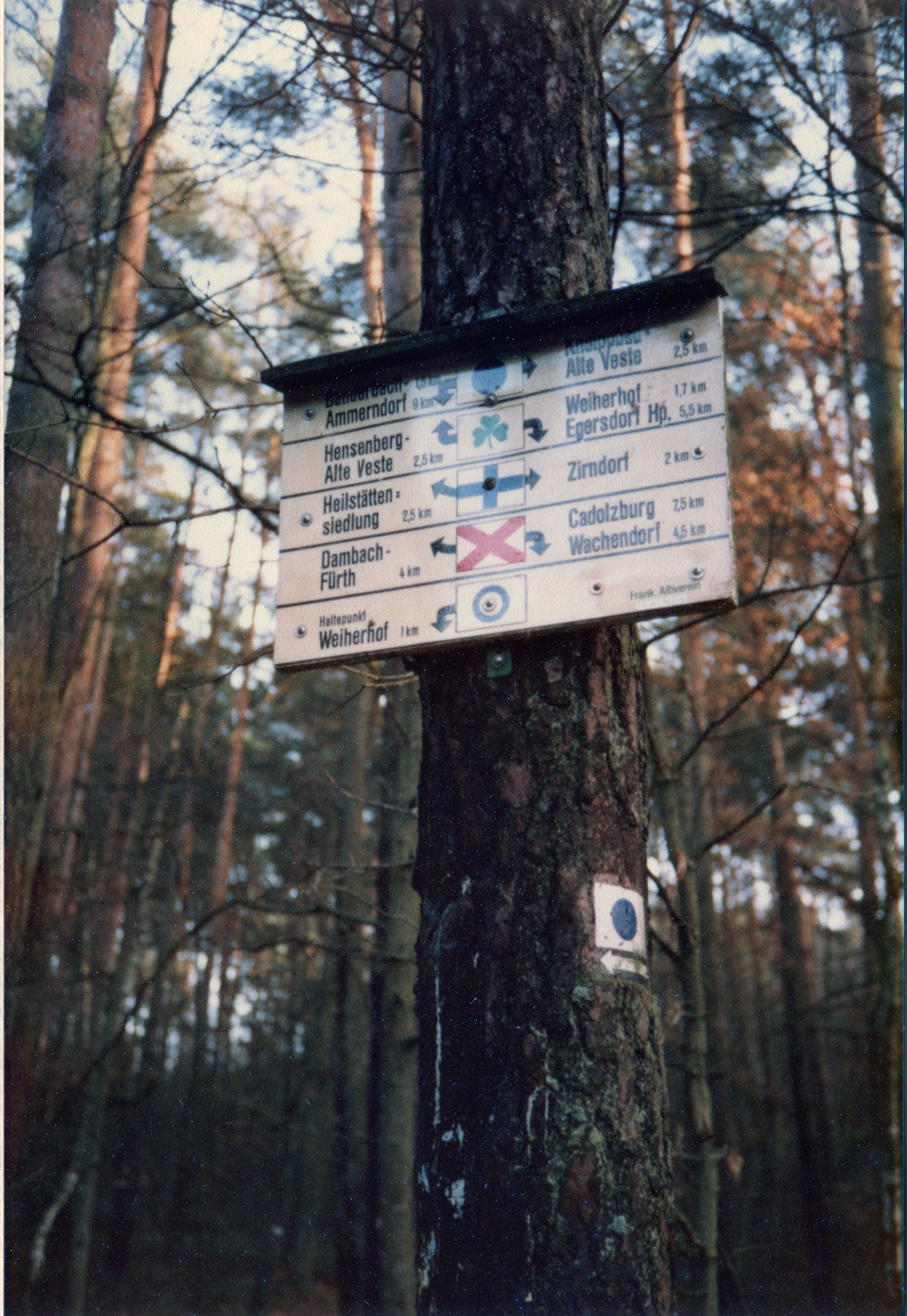 | Beschreibung | Wanderwege Übersichtstafel im Fürther Stadtwald 1974 | ||