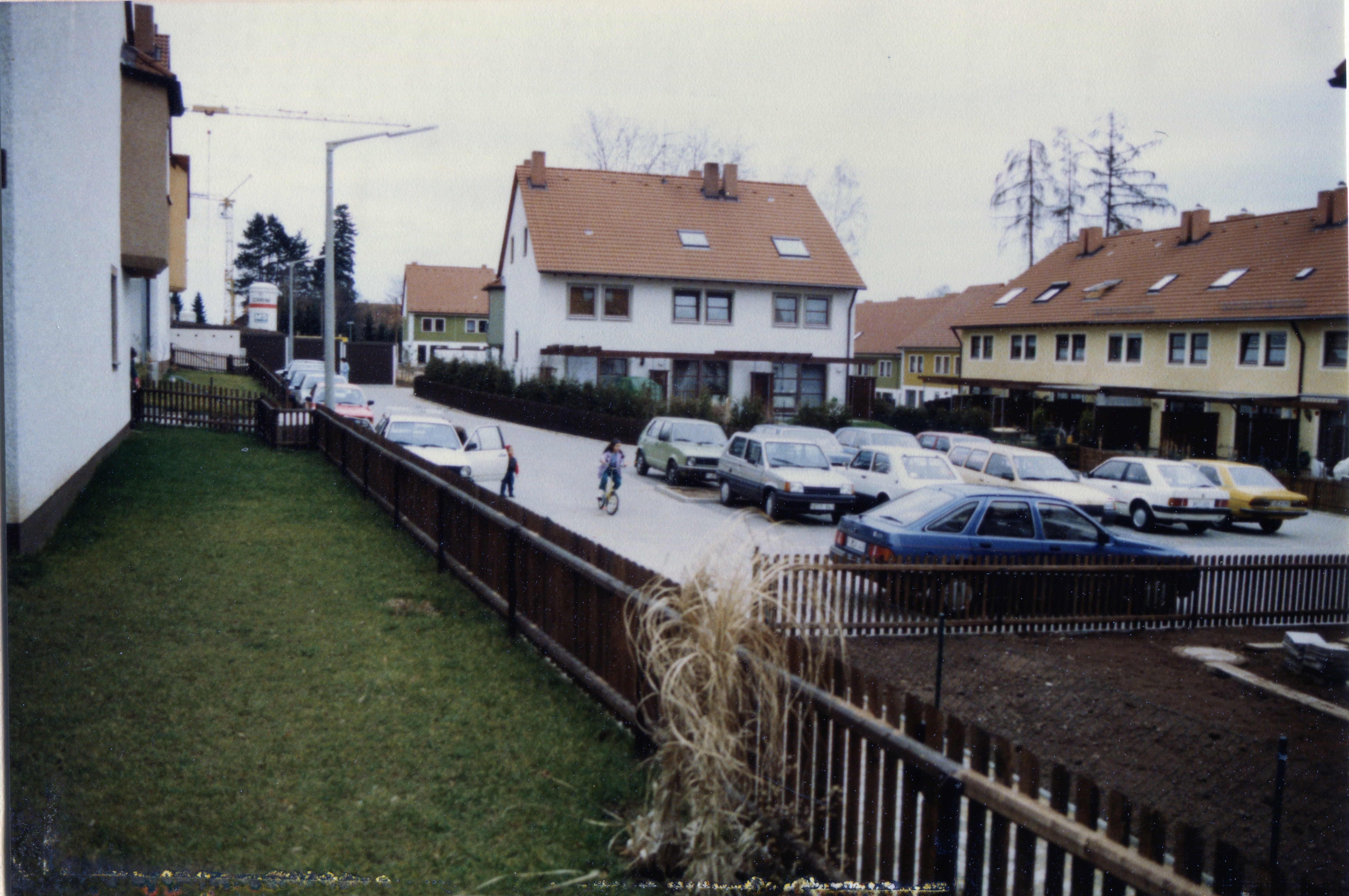 | Beschreibung | Neue Gebäude im ehem. Grüner Park (rechte Häuserzeile an der Vacher Straße) im Februar 1989 | ||