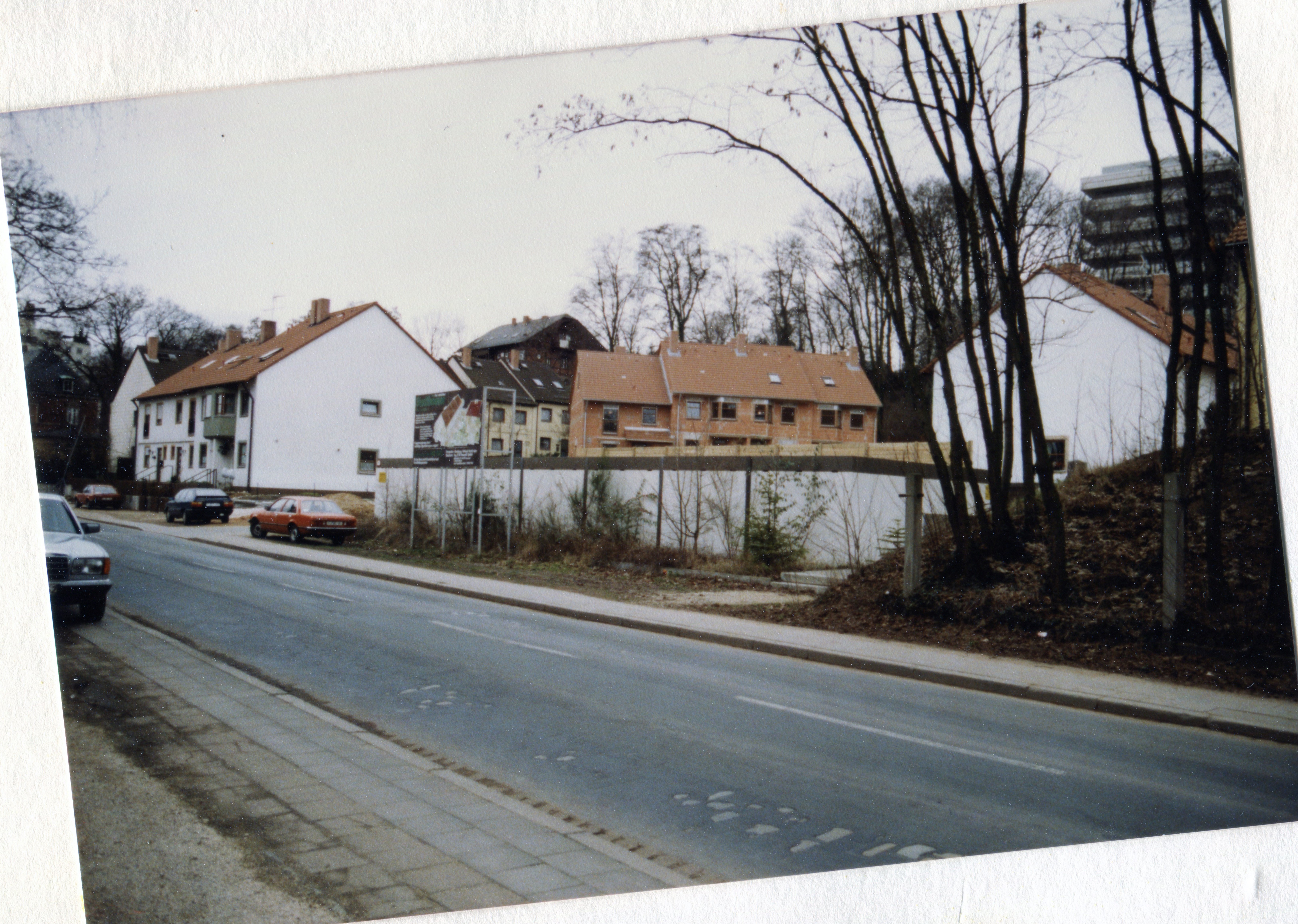 | Beschreibung | Neubauten und Garagen im ehem. Grüner Park von der Vacher Straße aus gesehen. Im Hintergrund die abgerissene Kinderklinik im Klinikum Fürth im Februar 1989 | ||