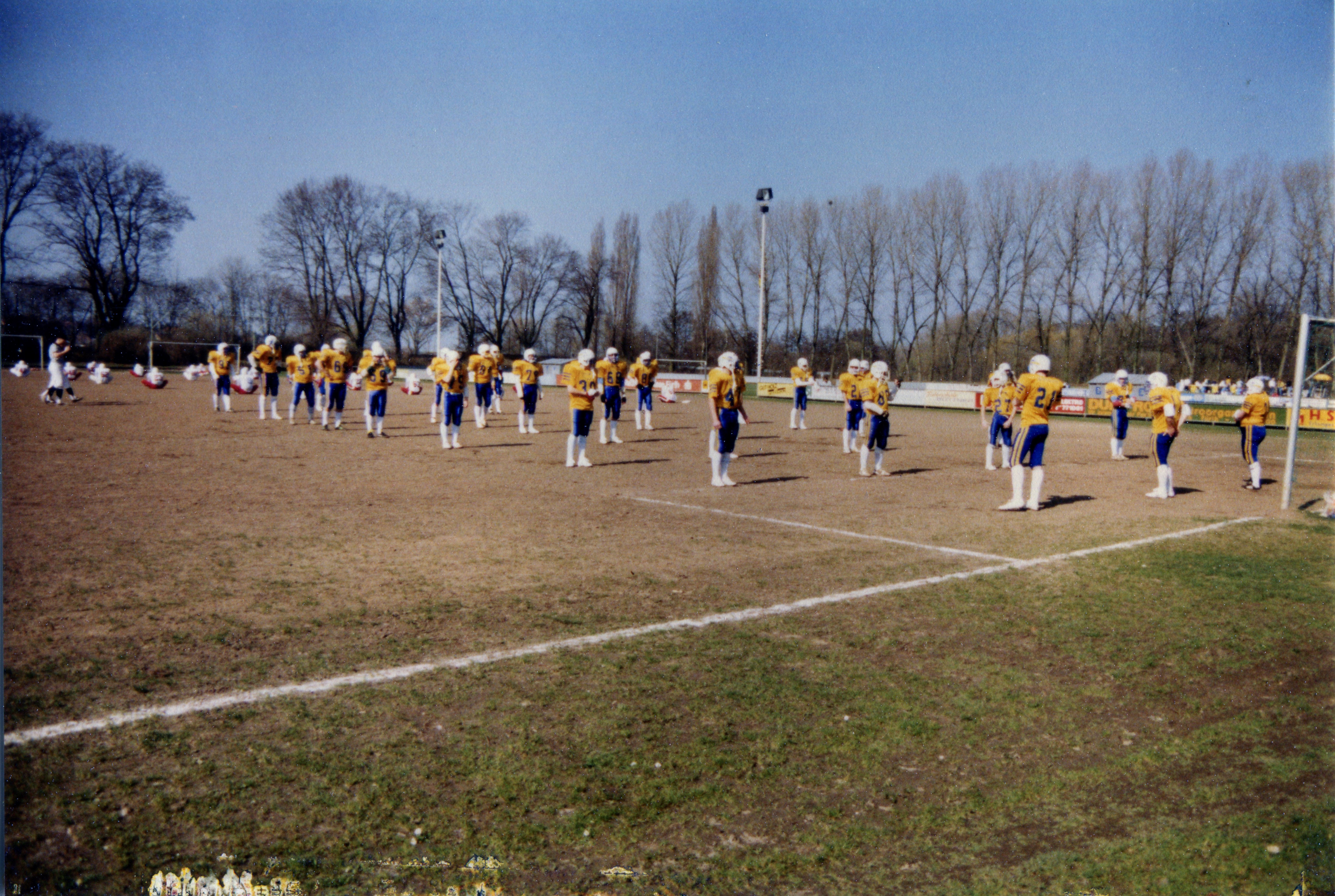 | Beschreibung | 2. Ligaspiel zwischen "Fürth Buffalos" Team in Gelb gegen "Stuttgart Scorpions" am 19.3.1989 | ||