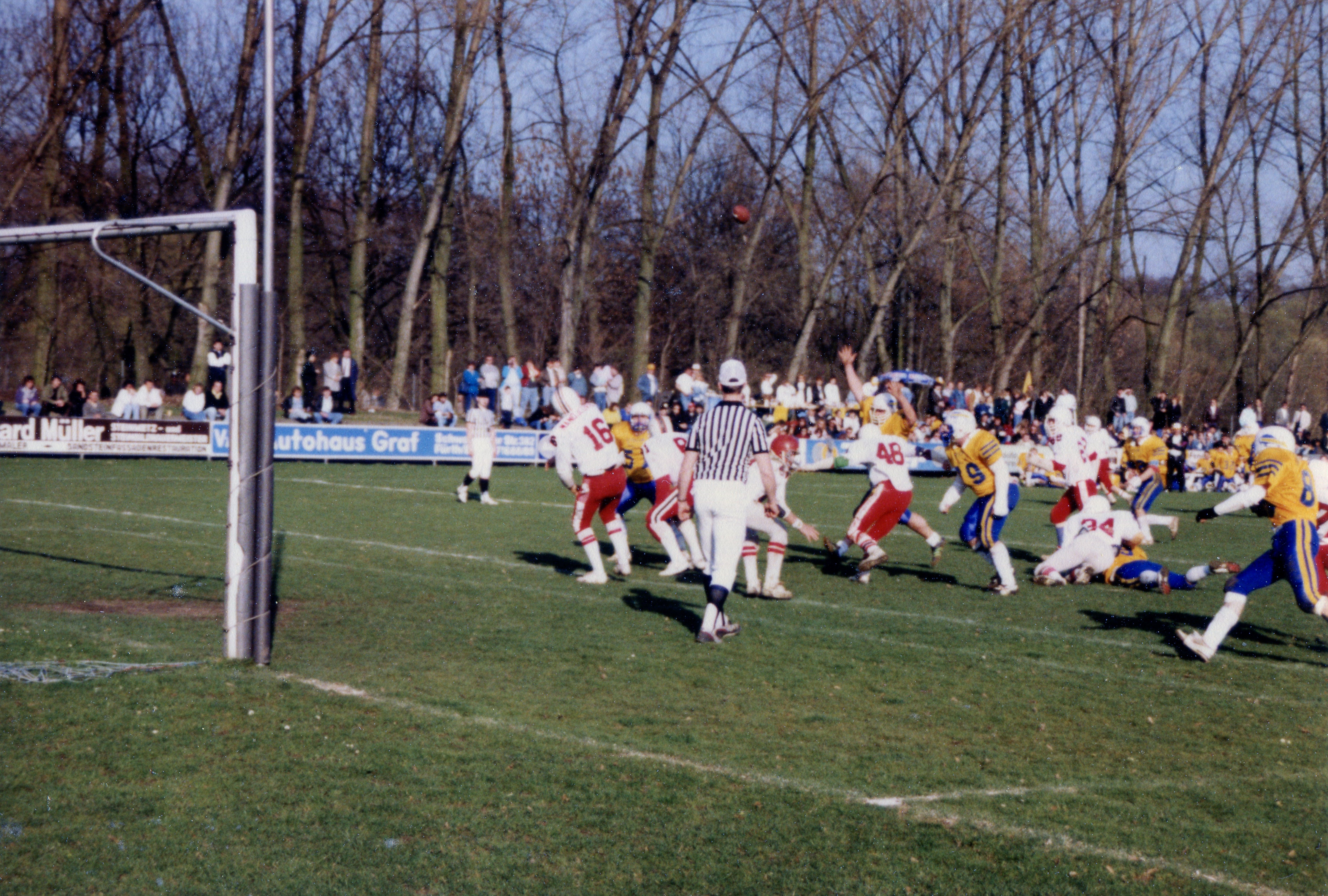 | Beschreibung | 2. Ligaspiel zwischen "Fürth Buffalos" Team in Gelb gegen "Stuttgart Scorpions" am 19.3.1989 | ||