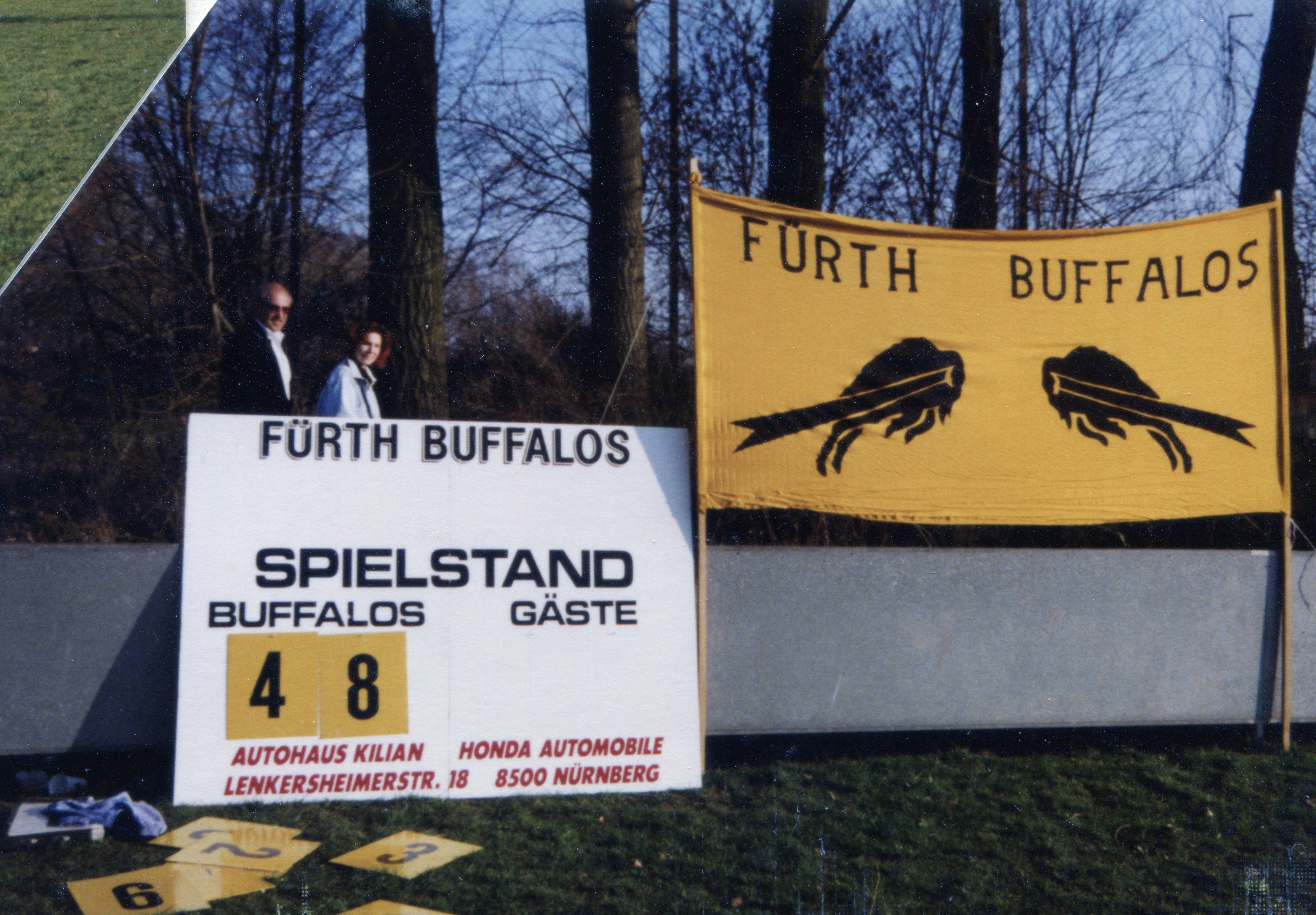 | Beschreibung | 2. Ligaspiel zwischen "Fürth Buffalos" Team in Gelb gegen "Stuttgart Scorpions" am 19.3.1989. Endstand: 48 : 0 für Fürth. | ||