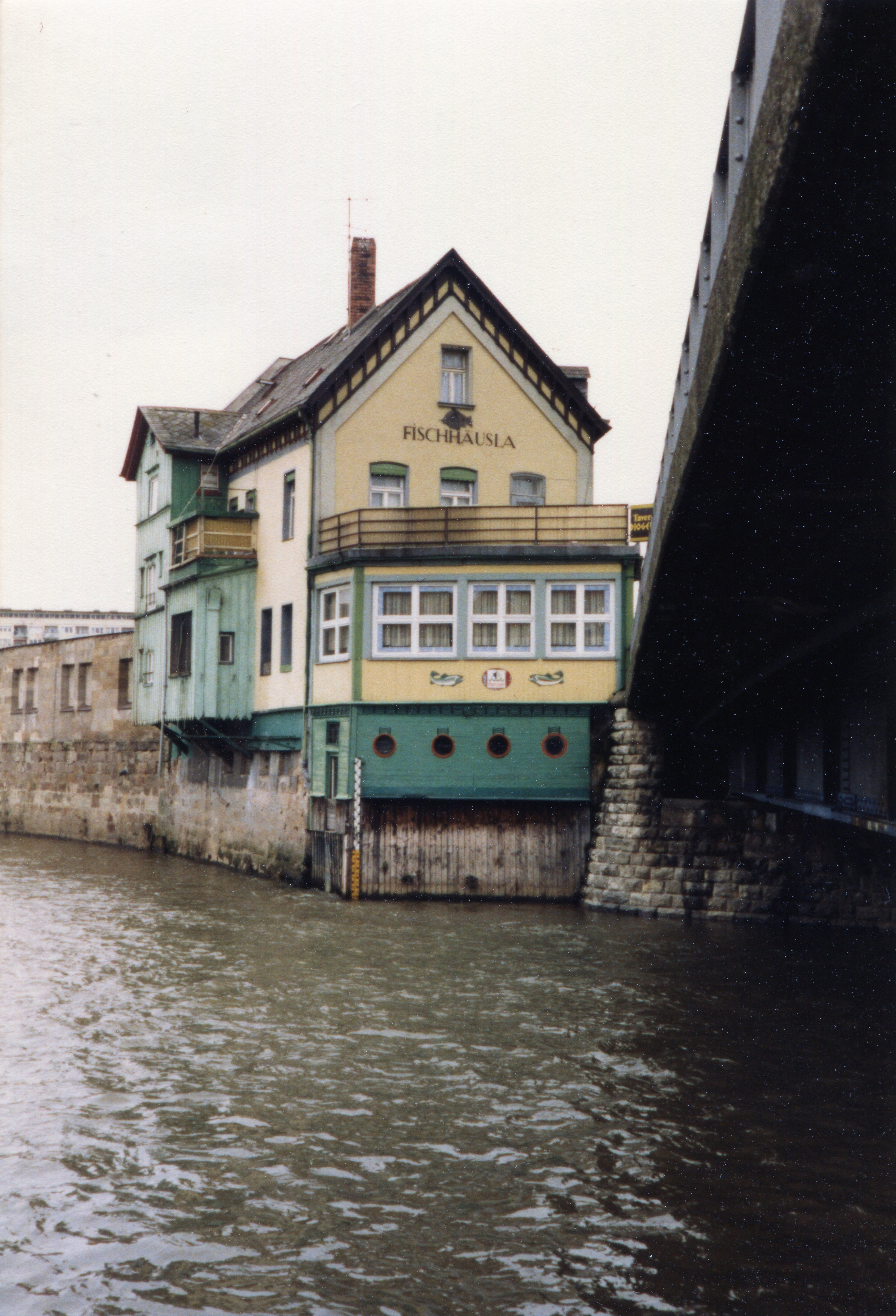 | Dateiinfo (Bild-Unterschrift und Info-Box, automatisch erstellt) | Die ehem. Gaststätte Fischhäusla an der schon abgerissenen Foerstermühle im Februar 1988 Urheber: Klaus-Peter Schaack<br>Erstellungsdatum: 7. Februar 1988<br>Lizenz: cc-by-sa-3.0 | ||