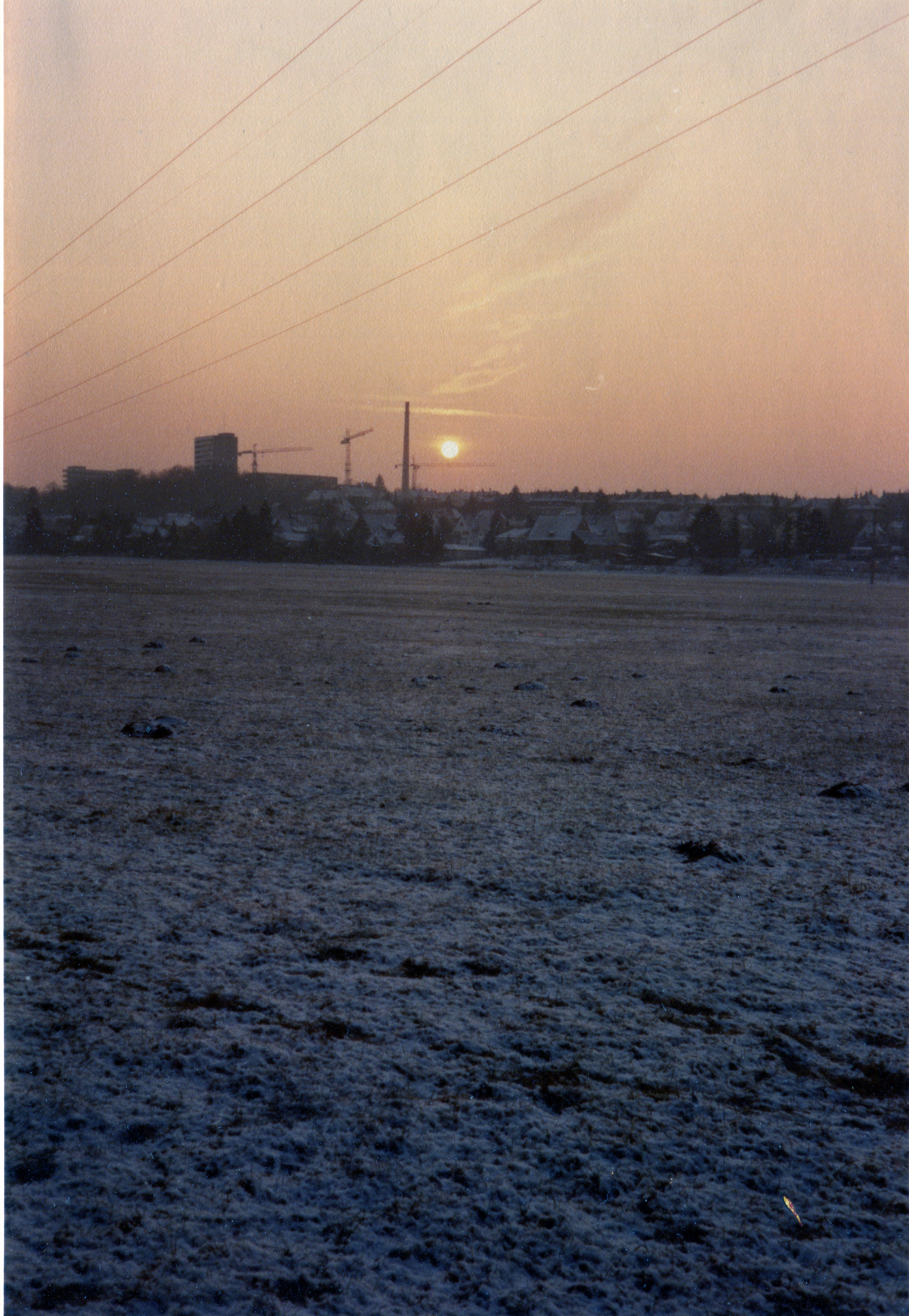 | Beschreibung | Blick vom Wiesengrund Richtung Vacher Straße und Eschenau. Am Grüner Park stehen die Krane schon in Position... Aufnahme vom 30.12.1984 | ||