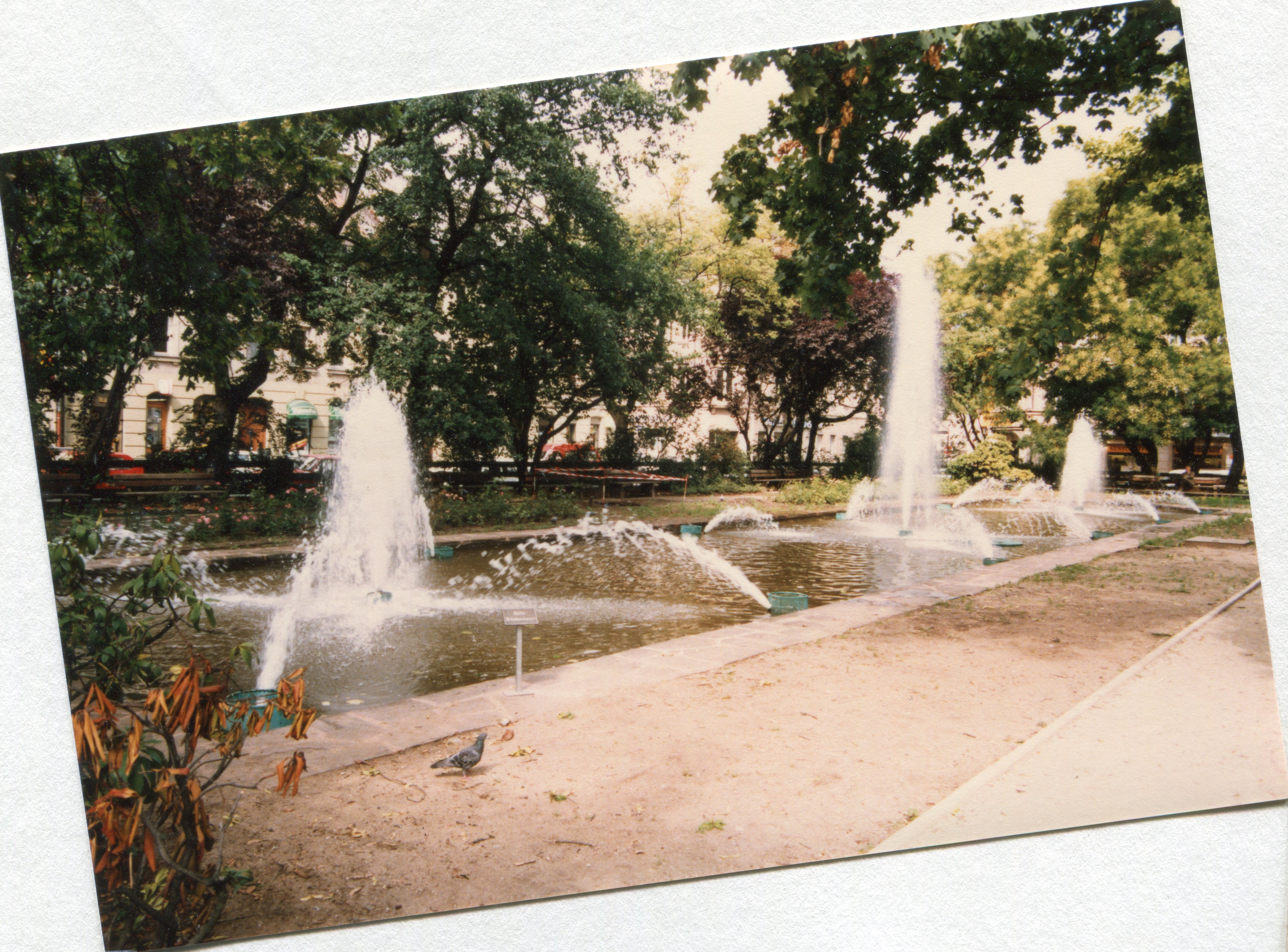 | Beschreibung | Springbrunnen in der Dr.-Konrad-Adenauer-Anlage im Hintergrund die Friedrichstraße im Sept. 1986 | ||