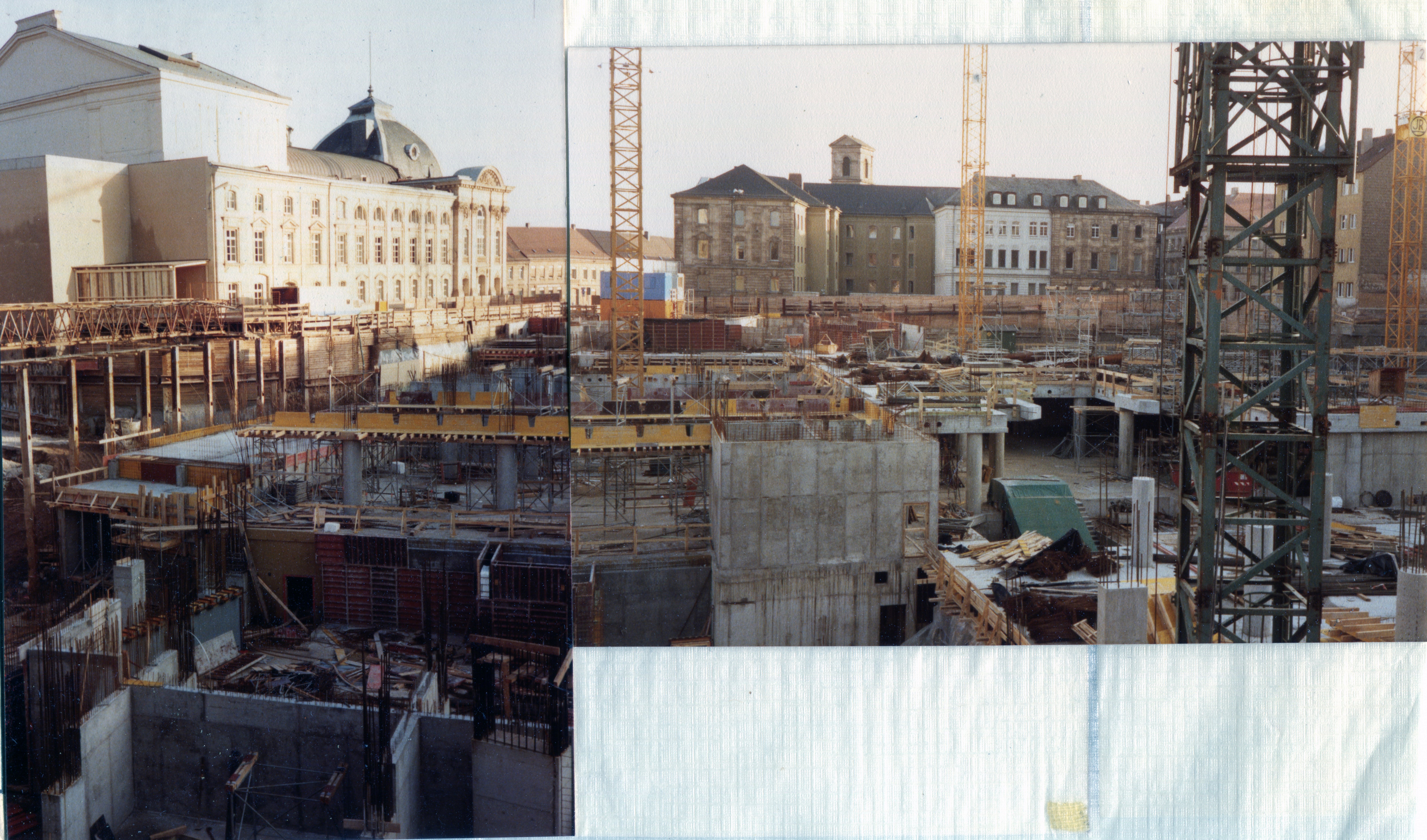 | Beschreibung | Baugrube City-Center - im Hintergrund links Stadttheater und Mitte Amtsgericht Hallstraße vom 8.1.1984 | ||