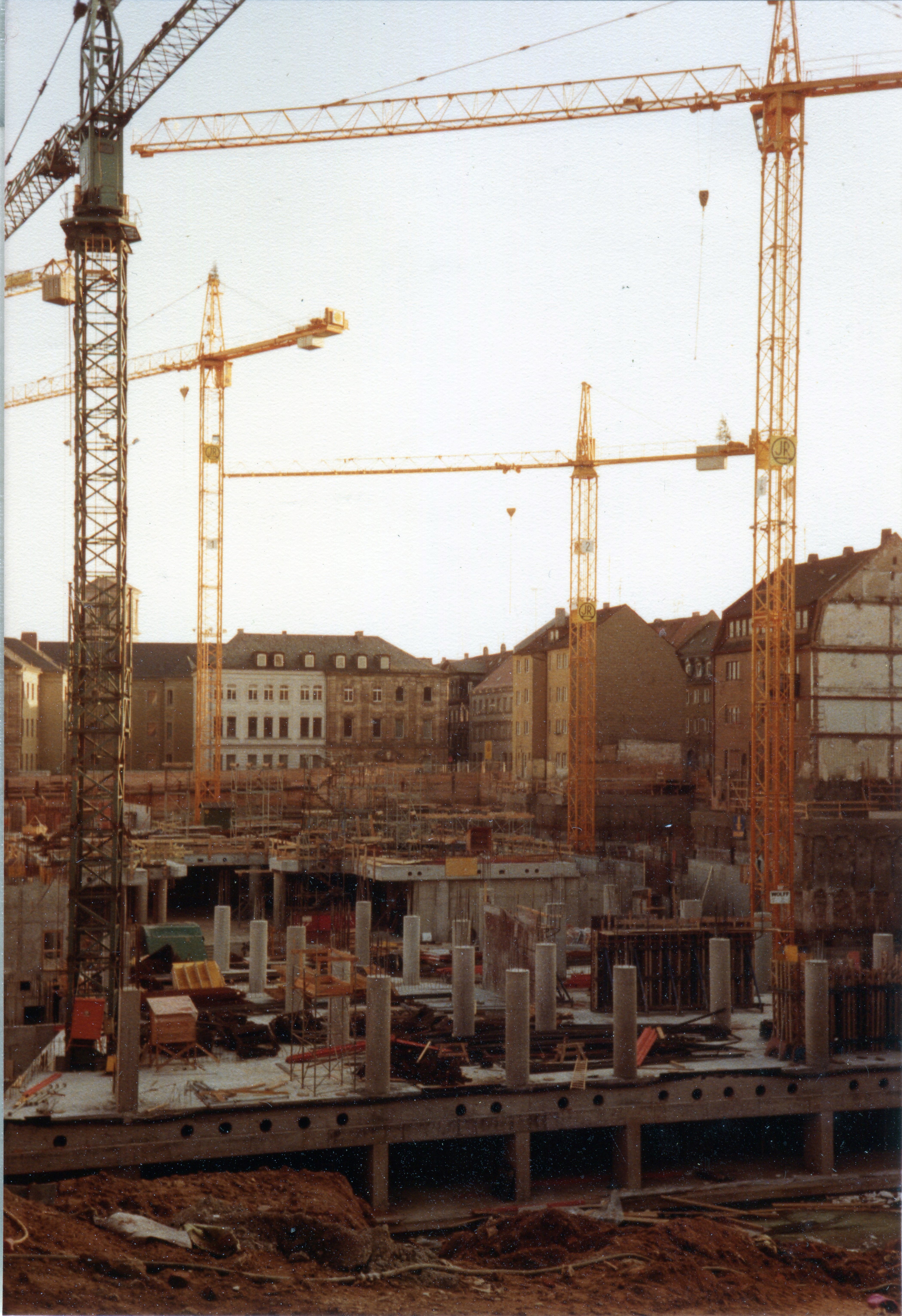 | Beschreibung | Baugrube City-Center - im Hintergrund Mitte Amtsgericht und rechts noch stehende Gebäude in der Alexanderstraße vom 8.1.1984 | ||