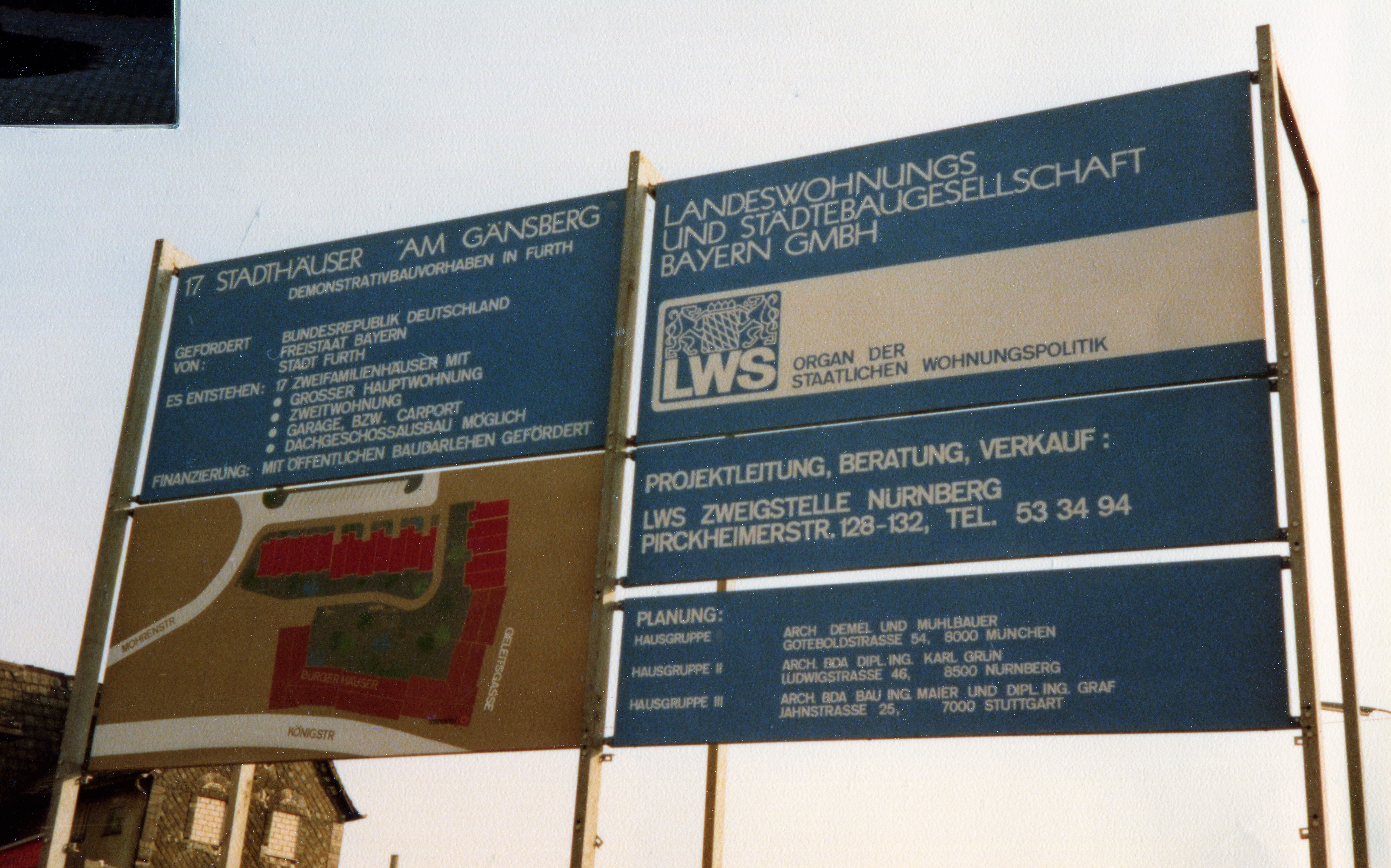 | Beschreibung | Werbetafel der neuen Stadthäuser zur Neubebauung des neuen Gänsbergs im März 1980 | ||