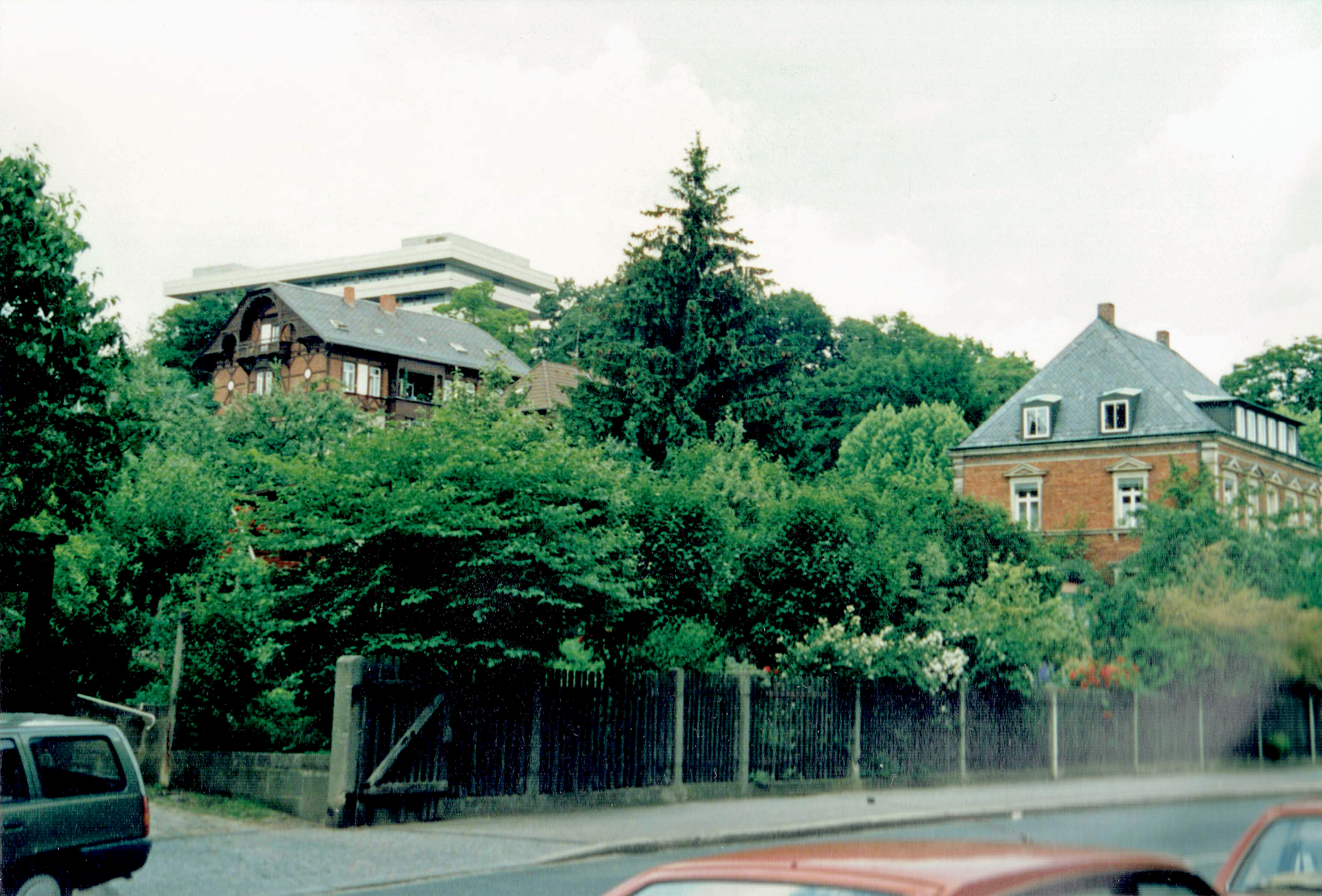 Blick von der Vacher Straße auf Gebäude in der Jakob-Henle-Straße, Juni 1991 Urheber: Klaus-Peter Schaack<br>Erstellungsdatum: 30. Juni 1991<br>Lizenz: cc-by-sa-3.0