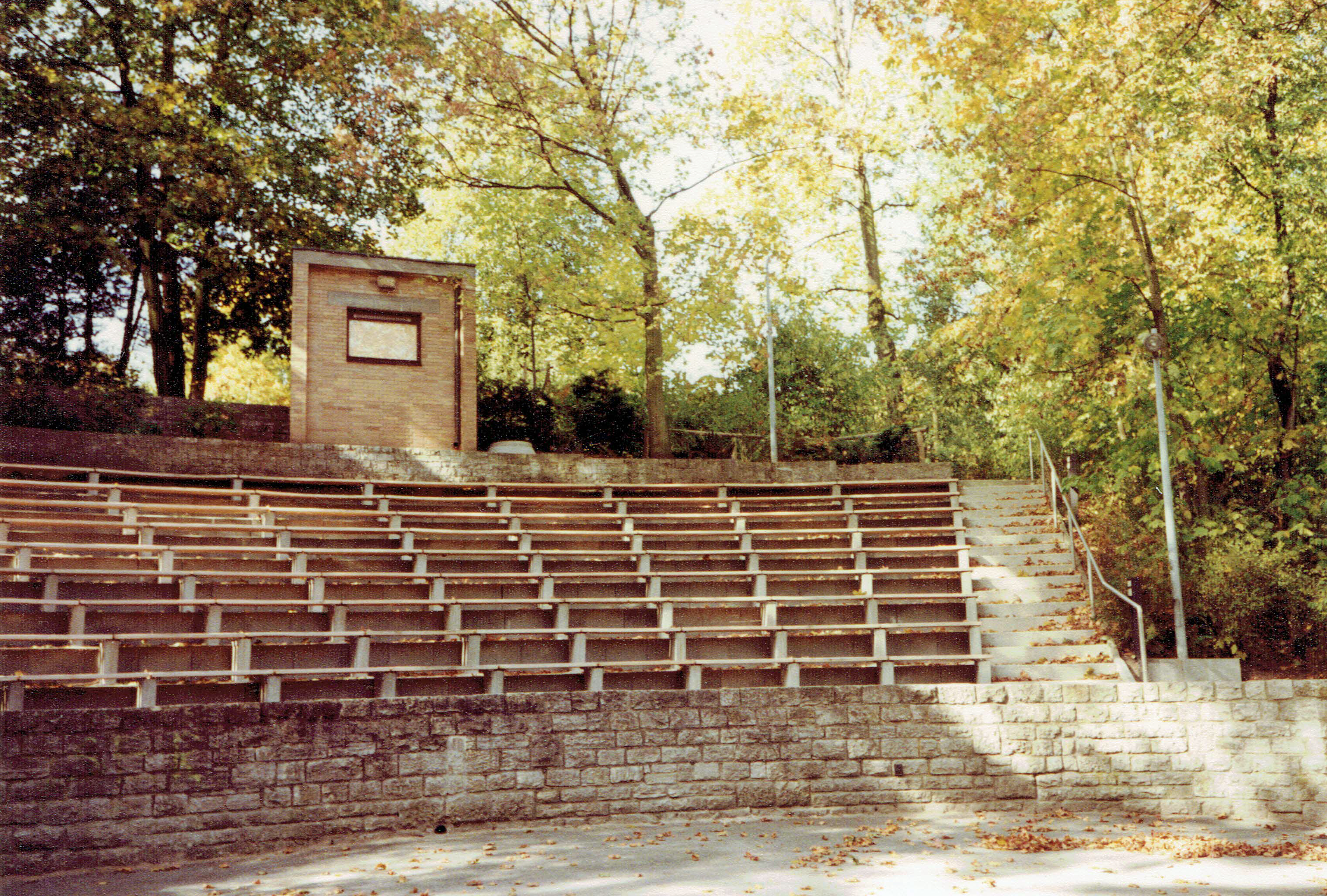 | Beschreibung | Blick auf Sitzränge der frisch sanierten Freilichtbühne, 1992 | ||