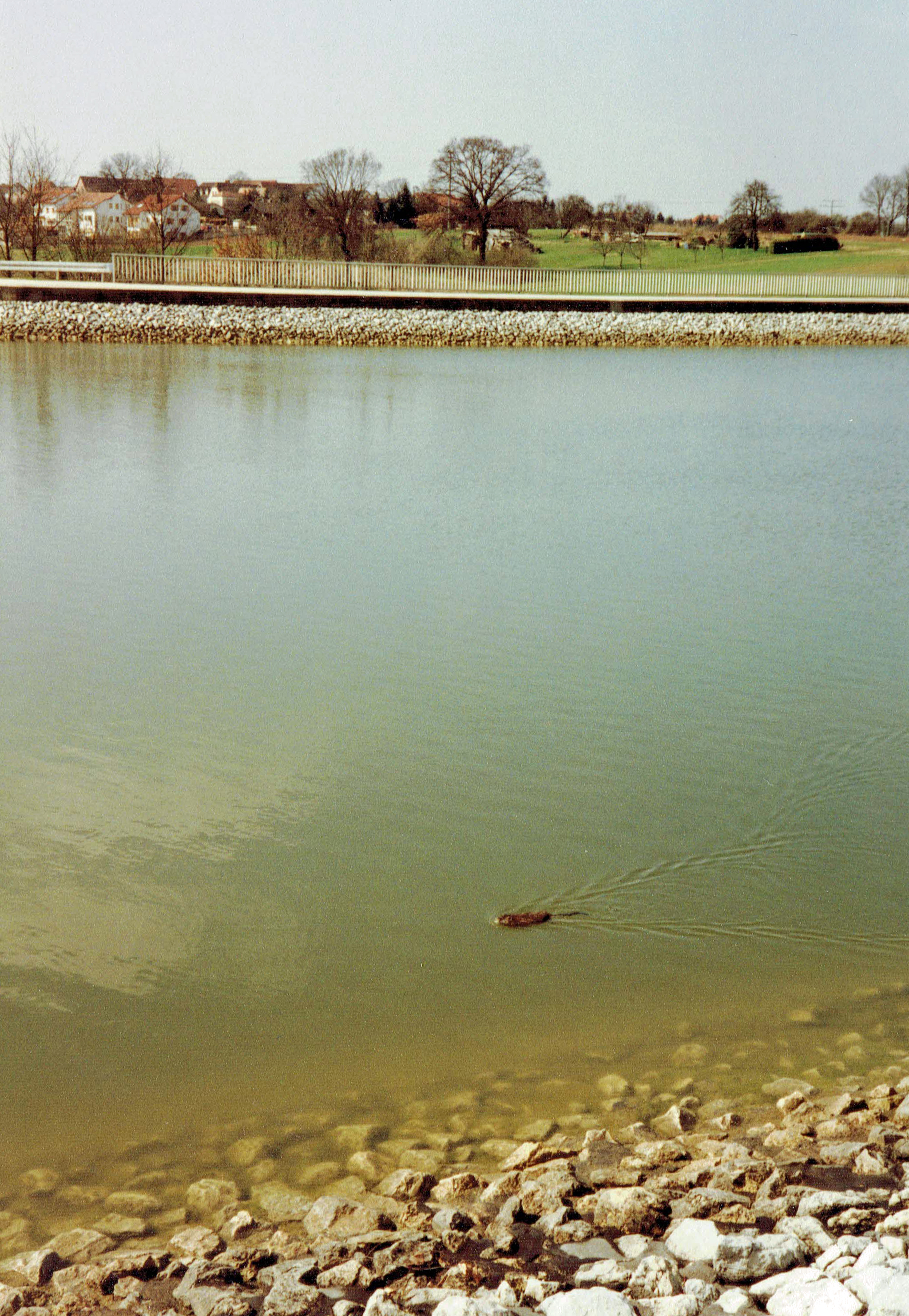 | Beschreibung | Blick von der Kanalbrücke auf Vach mit den Häusern am Hüttendorfer Weg, April 1993 | ||