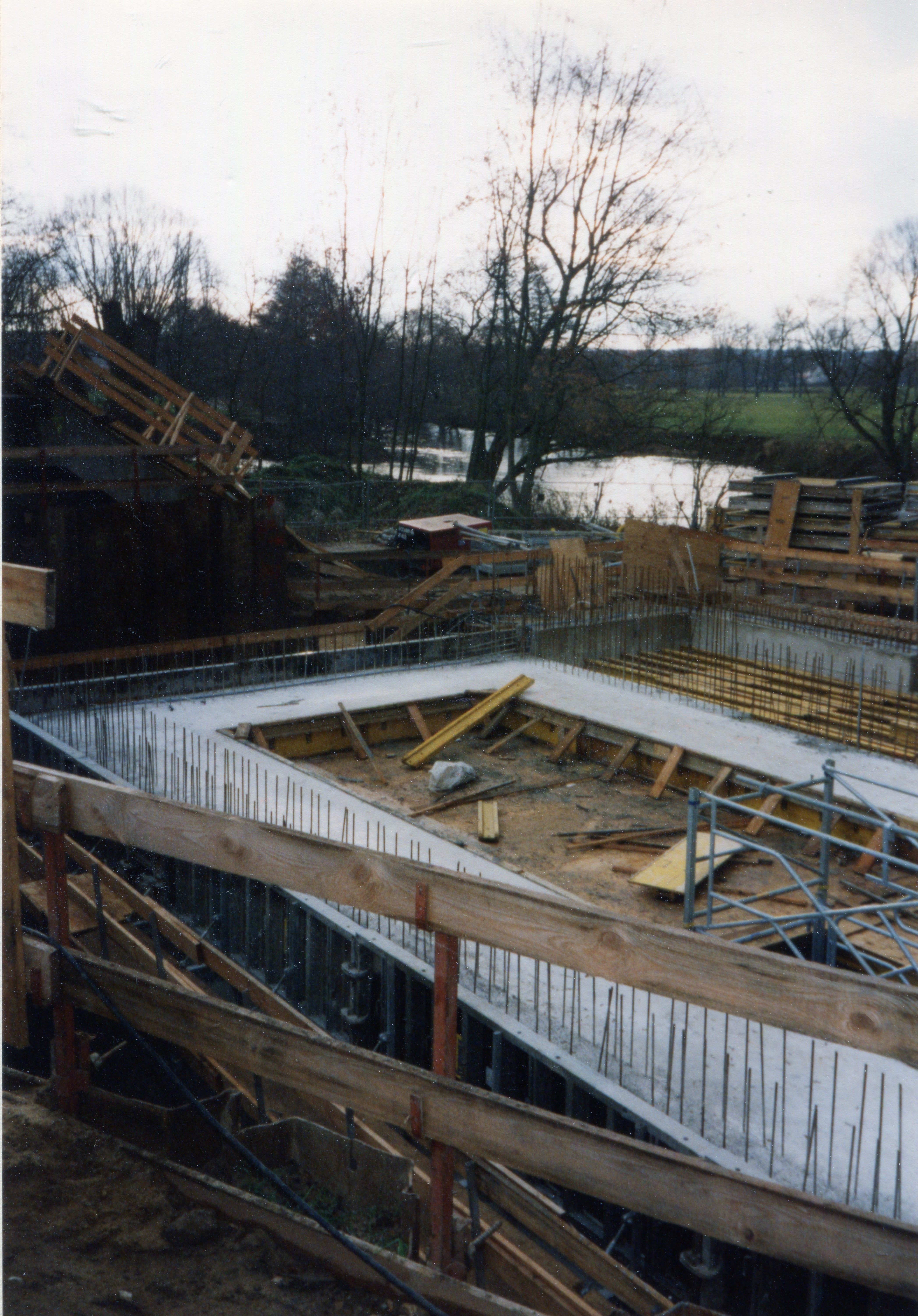 | Beschreibung | Neubau des Hebewerkes West zwischen Kläranlage Erlanger Straße und Regnitz, Dezember 1999 | ||