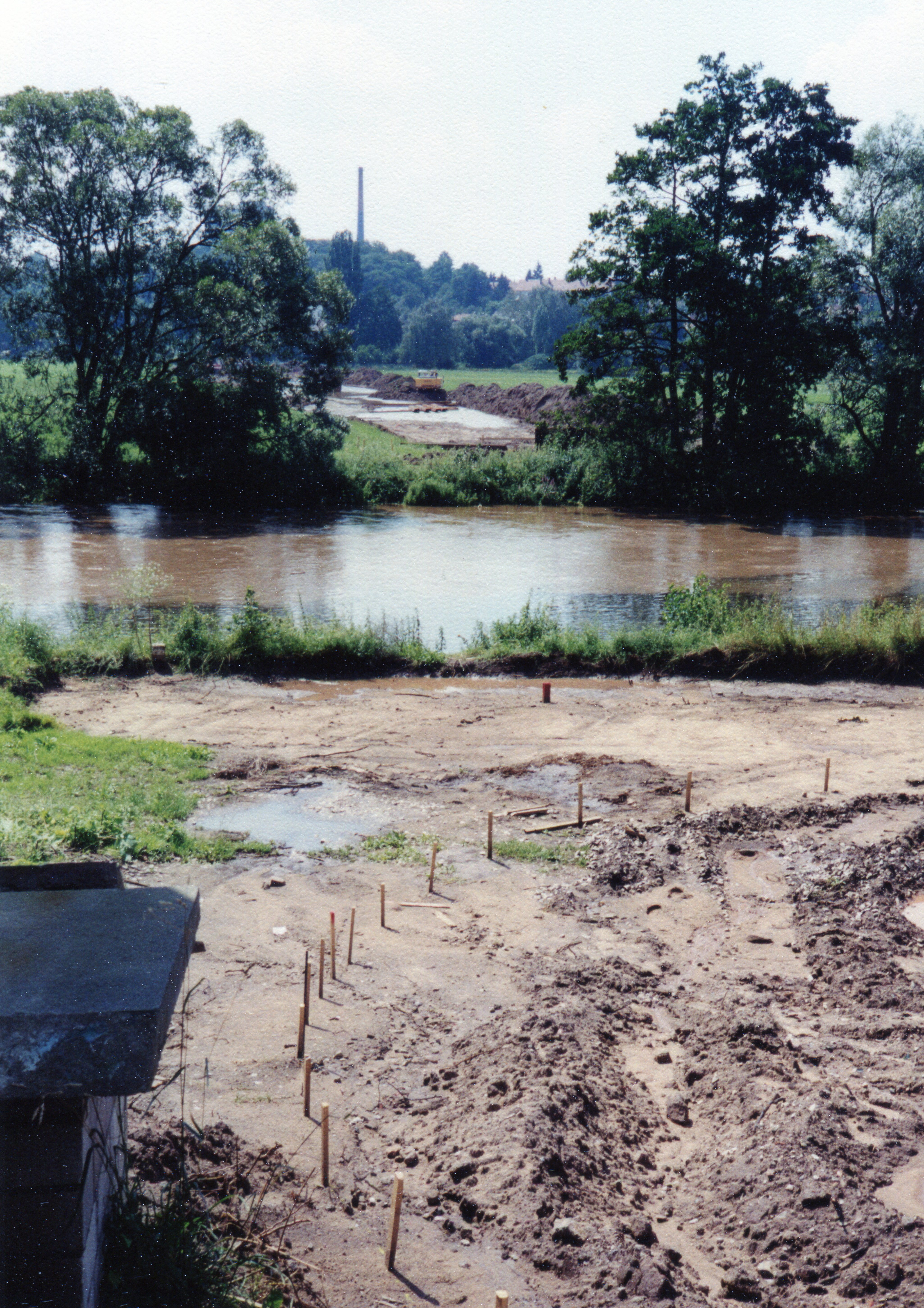 | Beschreibung | markiertes zukünftige Einspeisbecken im Vordergrund an der Kläranlage mit Baumaßnahmen in Wiesengrund für die Wasserüberleitung von der Wasserfassung Kapellenruh ins Knoblauchland des Wasserverbands Knoblauchsland, im Juli 1999 | ||
