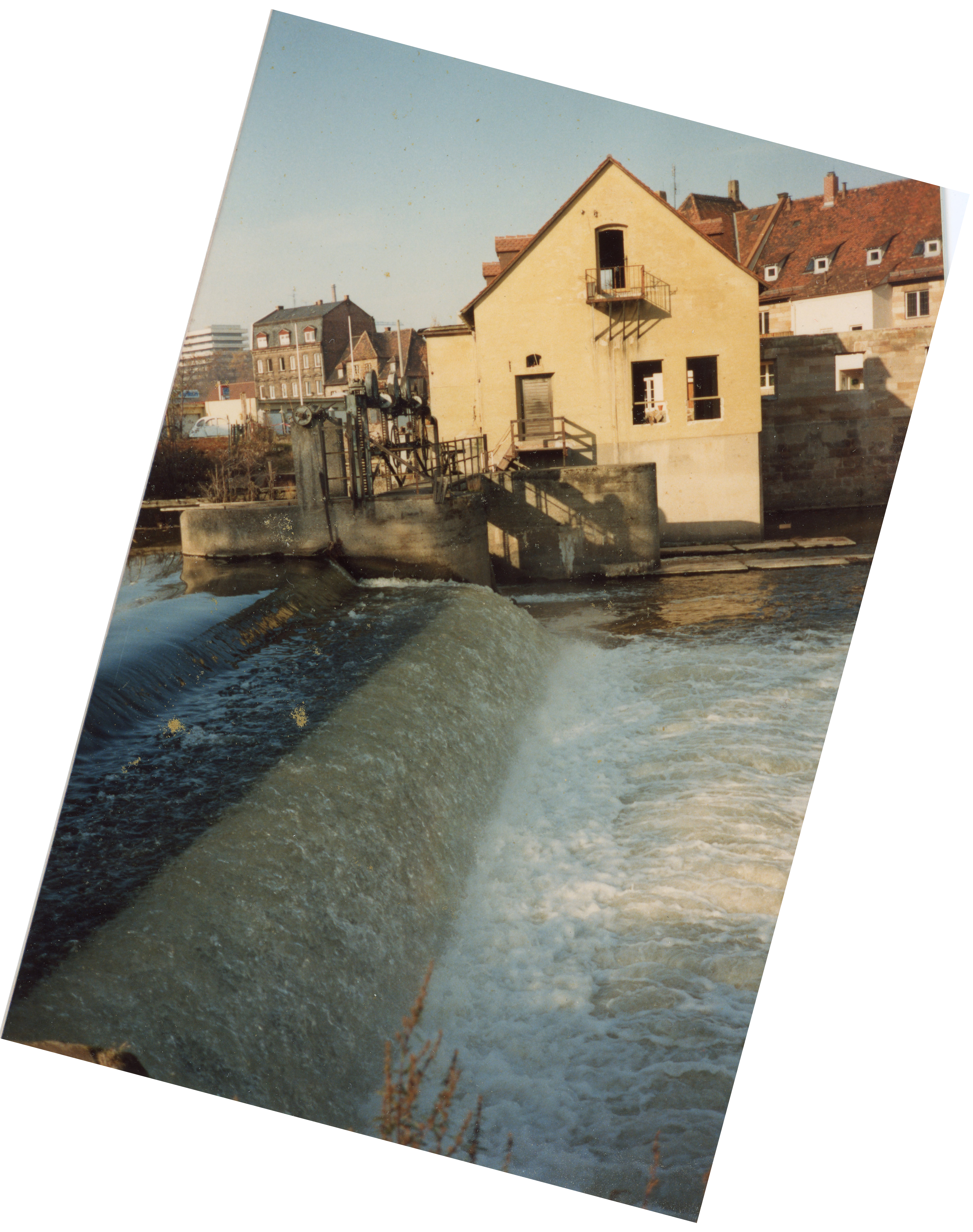 | Beschreibung | Umbauarbeiten am ehem. Turbinenhaus und Fertigstellung der neuen Stauanlage, 1990 | ||