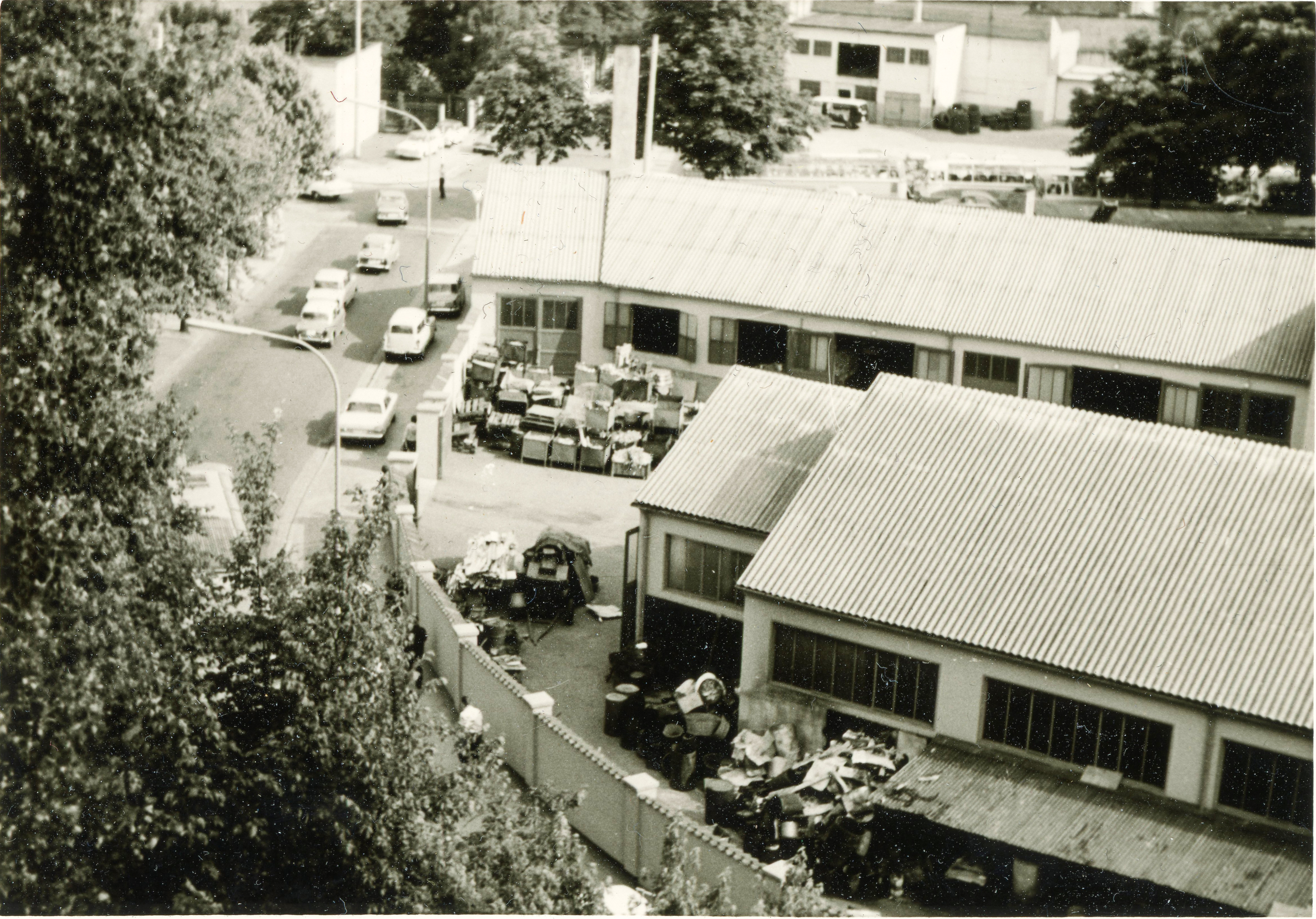 | Beschreibung | Blick aus den Laborräumen der Fa. Grundig auf die Dr.-Mack-Straße 96, Juni 1966 | ||
