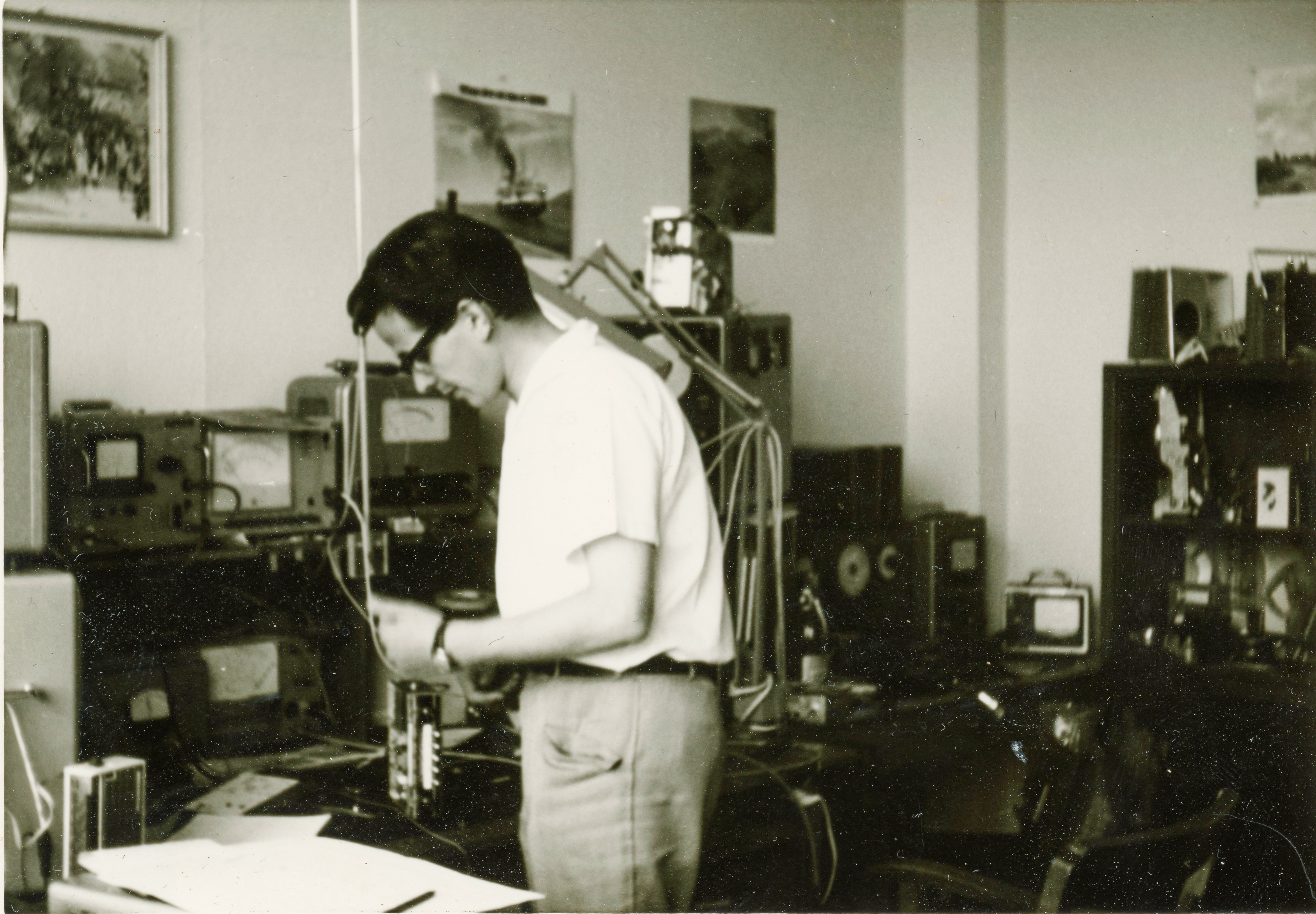 | Beschreibung | Laborräume in der Fa. Grundig an der Stadtgrenze - hier mit Klaus-Peter Schaack, Juni 1966 | ||