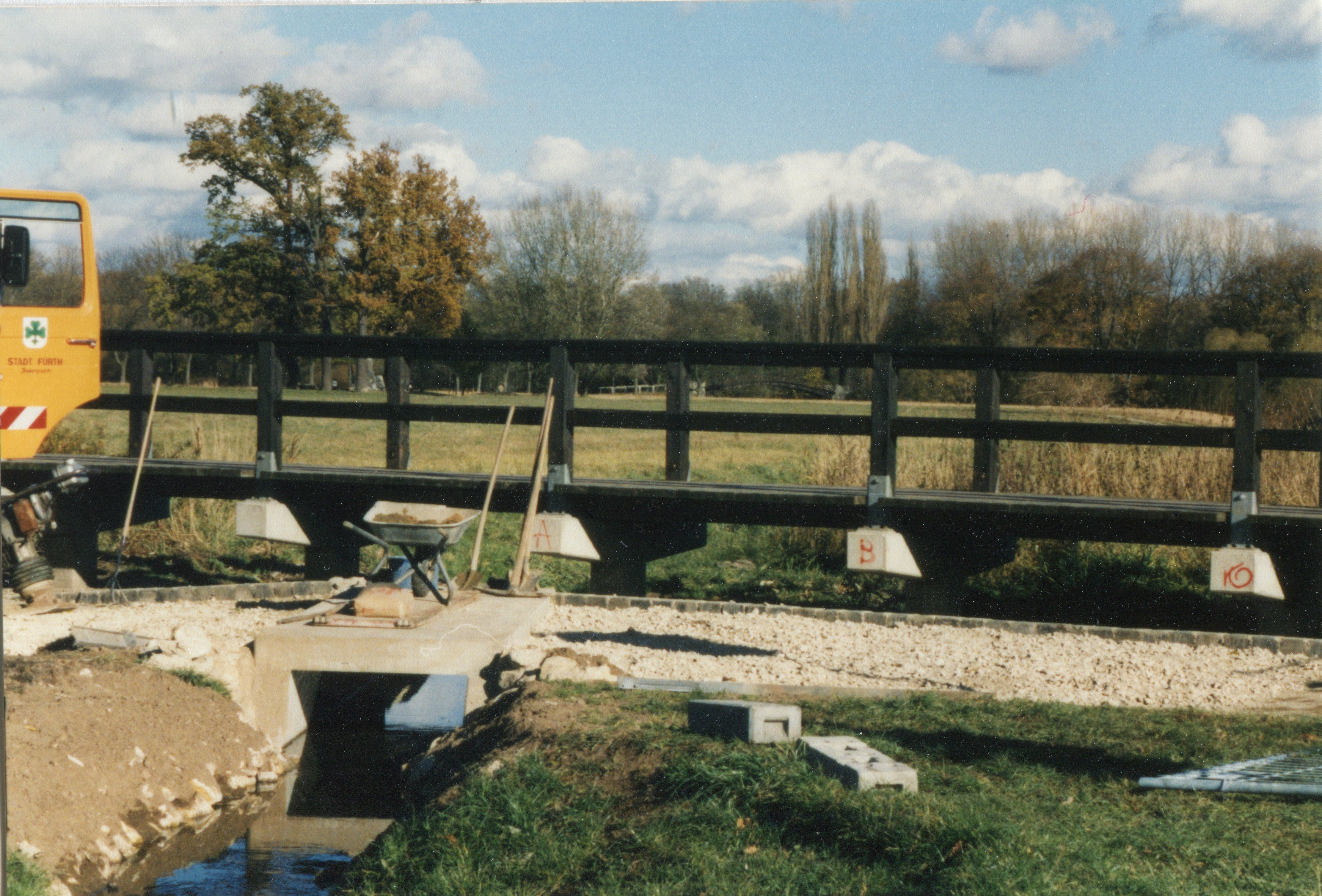 | Beschreibung | neue Fußgängerbrücke über den Scherbsgraben (Gewässer). Im Hintergrund Kapellenruh und alter Käppnersteg im November 1997 | ||