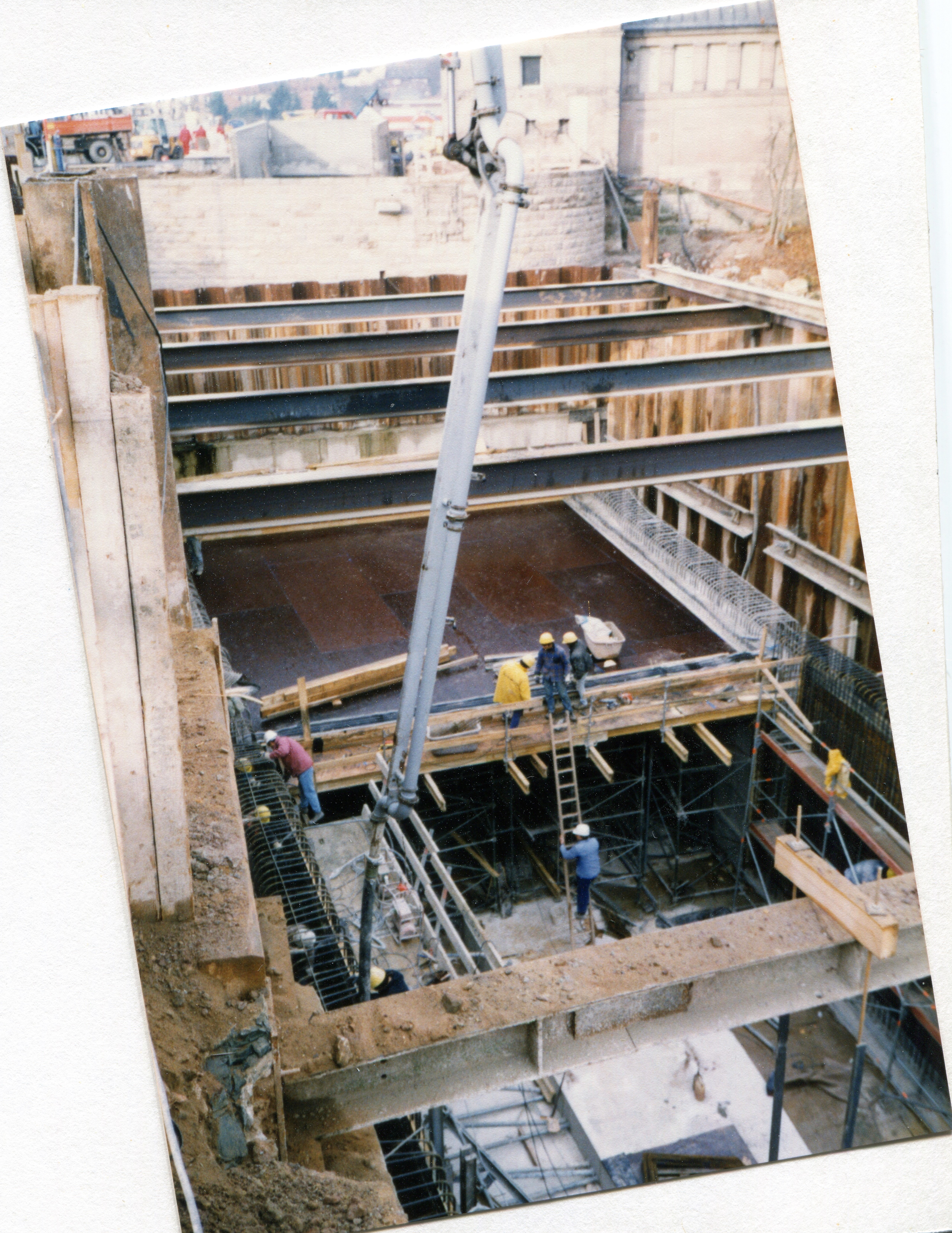 | Beschreibung | Spundwand Kasten in der Rednitz an der Maxbrücke von der Königstraße aus zur Vorbereitung zu den Tiefbauarbeiten zur Unterquerung des Flusses für die U-Bahn am 8. Dezember 1997. | ||