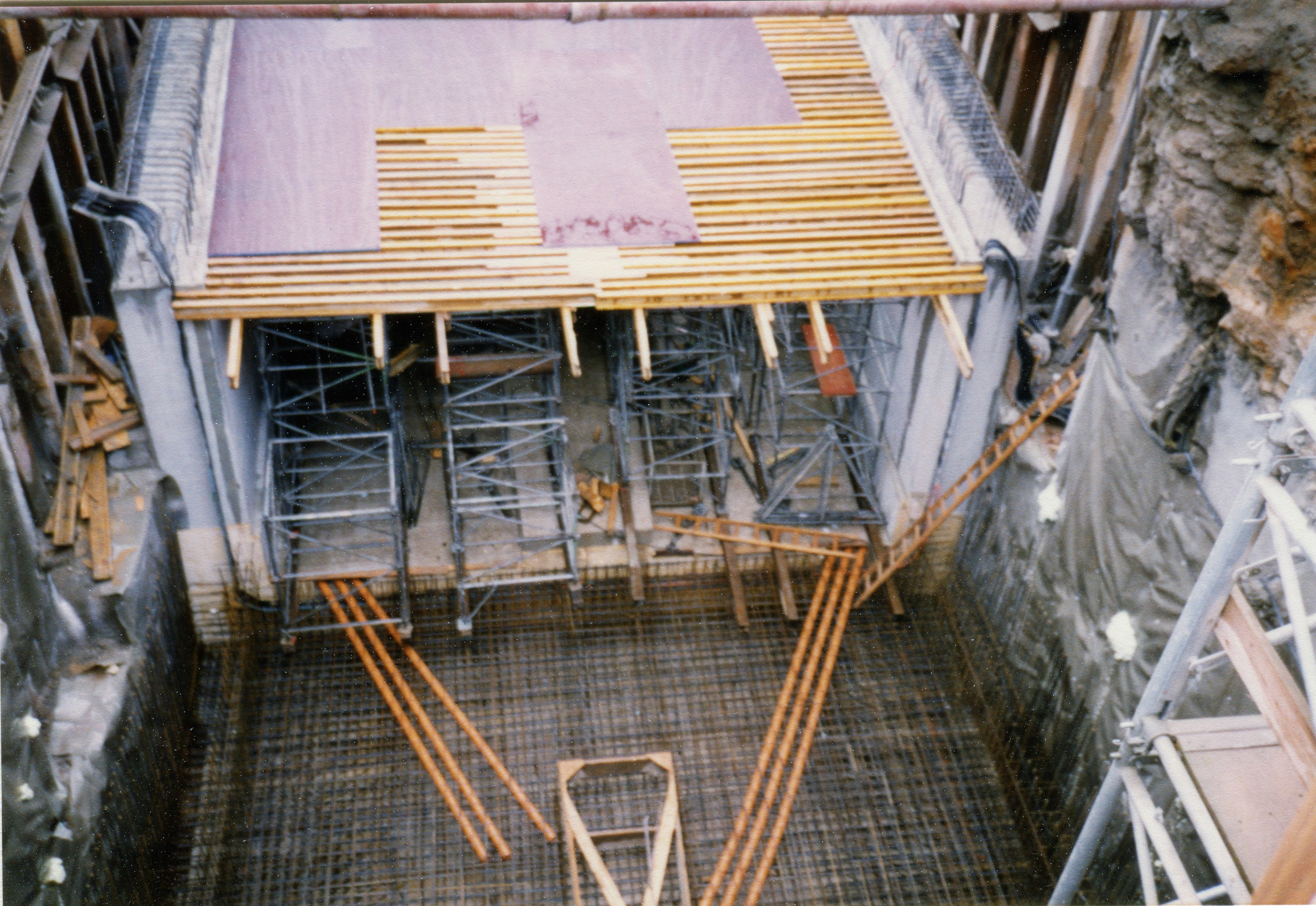 | Beschreibung | Spundwand Kasten in der Rednitz an der Maxbrücke von der Königstraße aus zur Vorbereitung zu den Tiefbauarbeiten zur Unterquerung des Flusses für die U-Bahn am 14. Dezember 1997. | ||