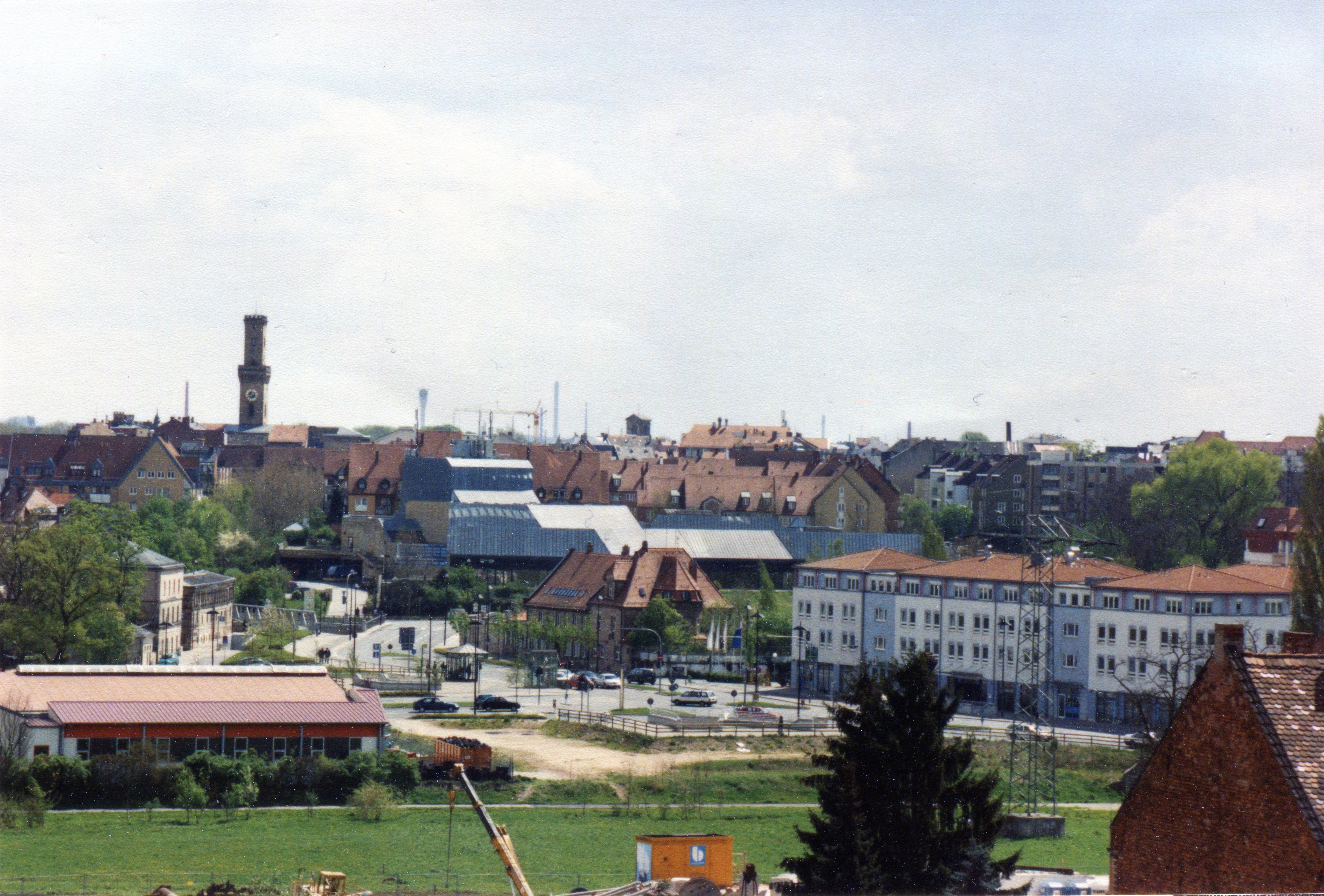 | Beschreibung | Panorama auf Fürth vom Steilhang an der Vacher Straße vlnr. Kulturforum, Rathaus Turm, Maxbrücke, Stadthalle mit Metalldach, U-Bahnhof Stadthalle Treppen, Foerstermühle und Hotel am Forum im September 2001 | ||