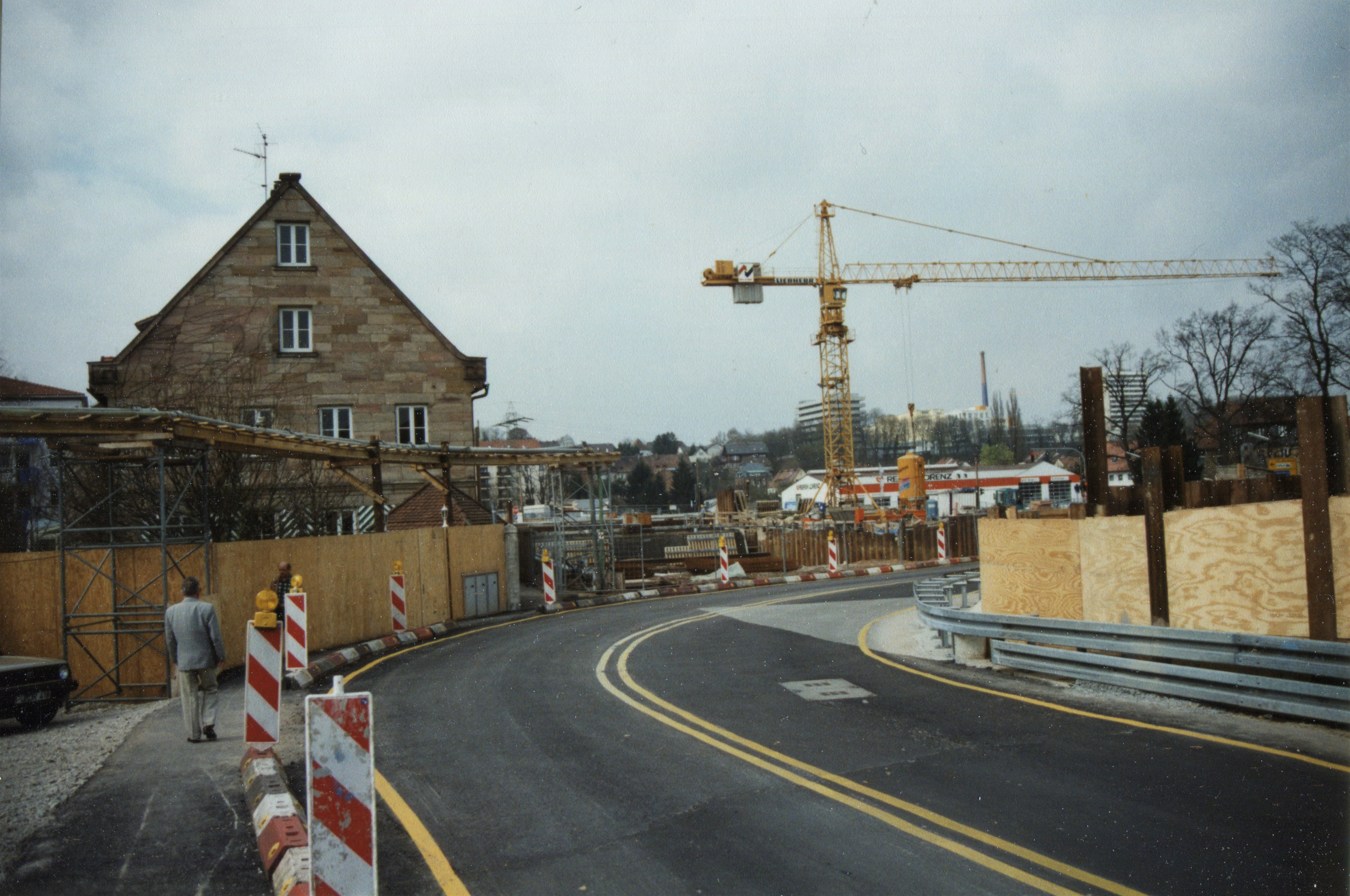 | Beschreibung | Verkehrsführung der Würzburger Straße nach der Maxbrücke wegen U-Bahn Bau Richtung Billinganlage im März 1997. | ||