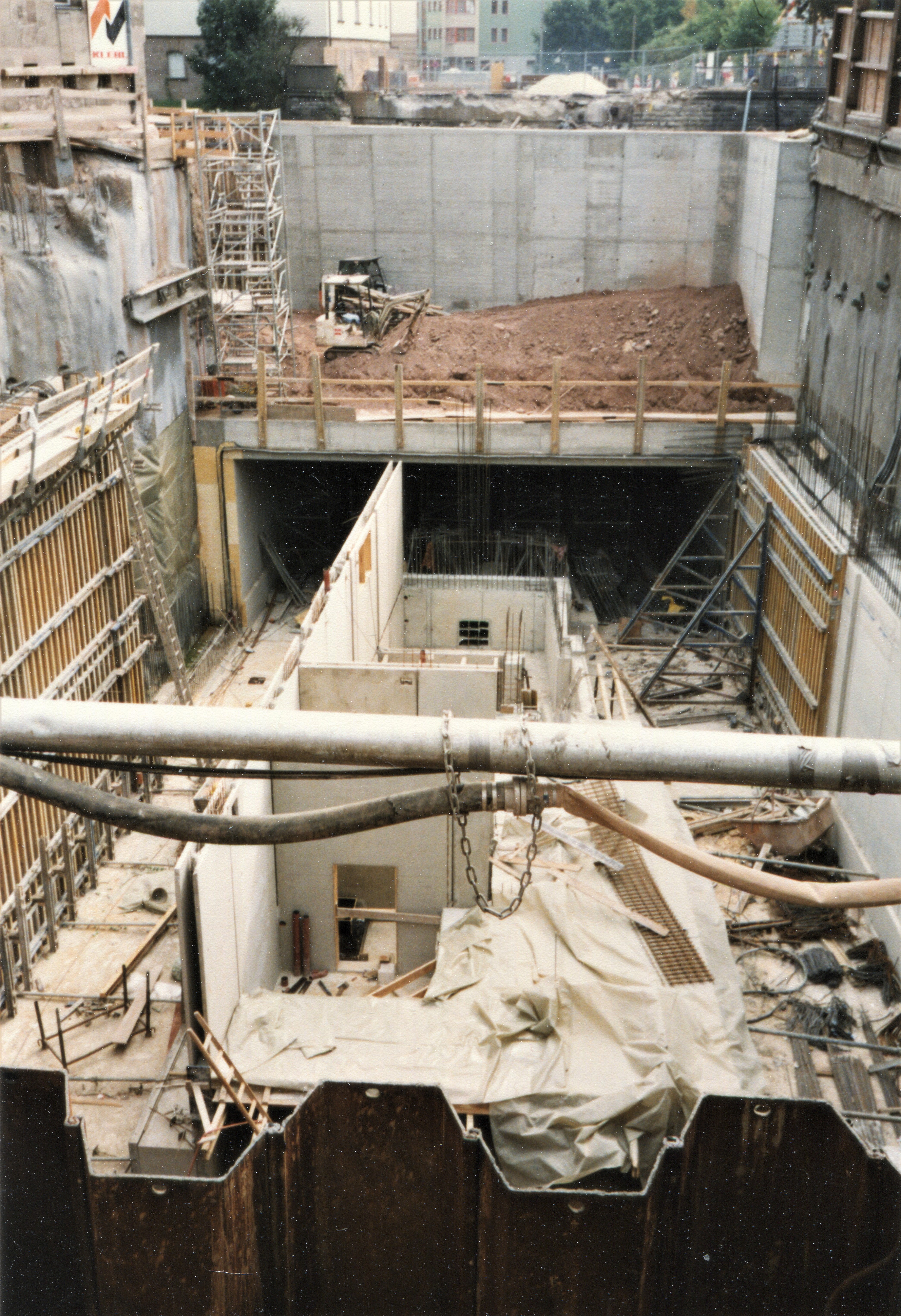 | Beschreibung | Tiefbauarbeiten vor dem Kulturforum für den zukünftigen U-Bahnhof Stadthalle im August 1997 | ||