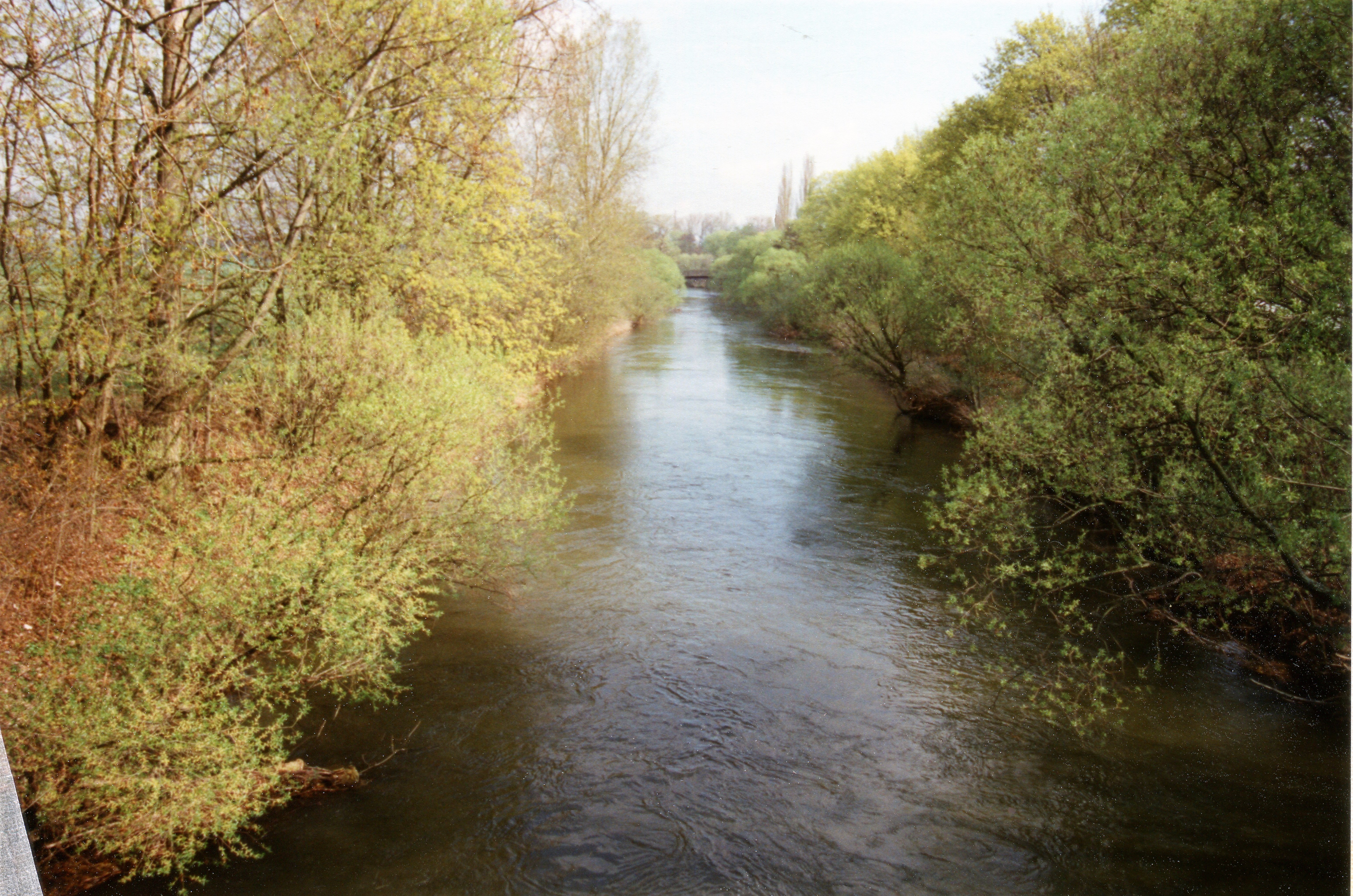 | Beschreibung | Blick auf die Rednitz von der Dietrich-Bonhoeffer-Brücke aus Richtung Käppnersteg im März 1998 | ||