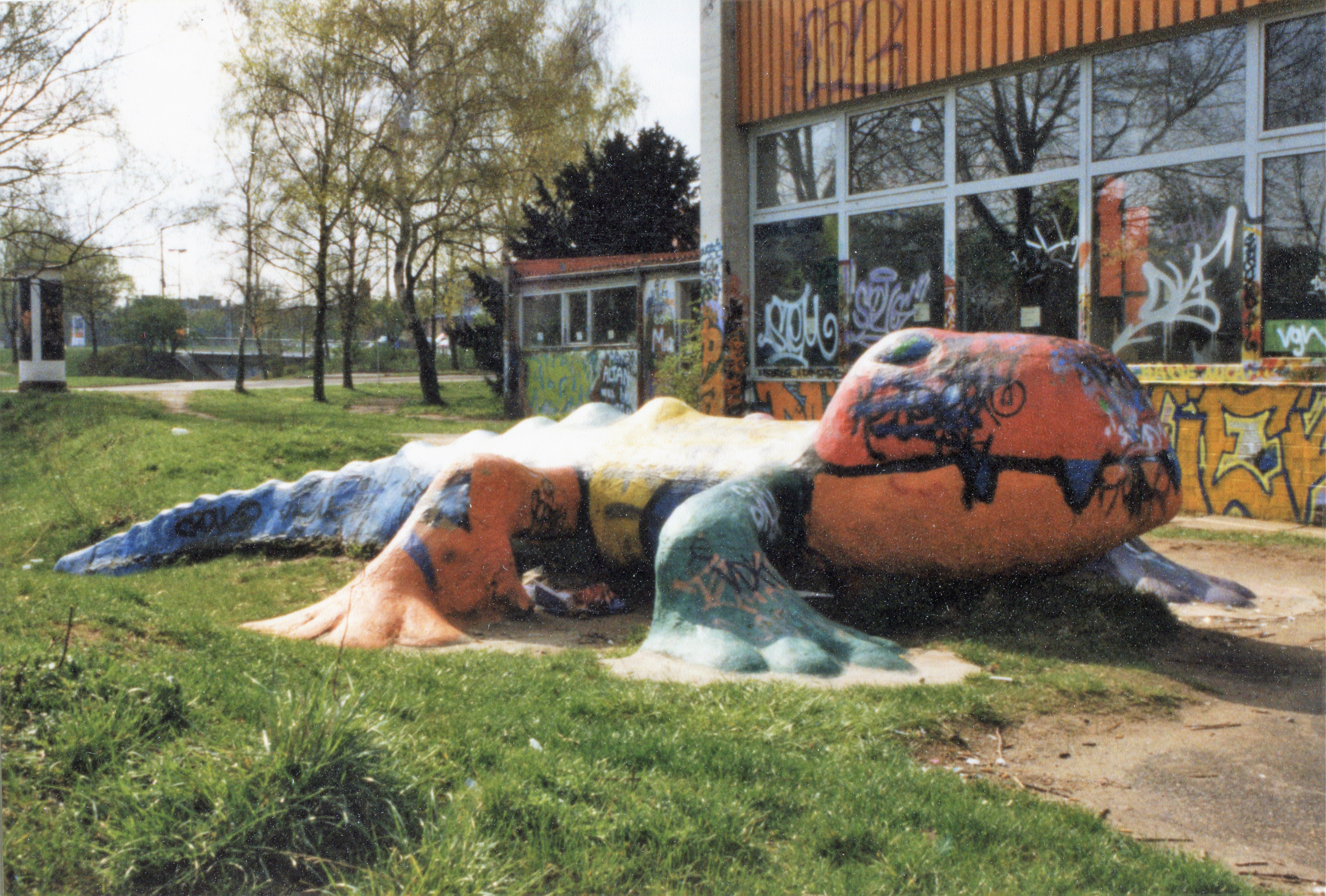 BeschreibungRückseite des ursprünglichen Jugendhaus Lindenhain mit Hinterhof Monster im April 1998